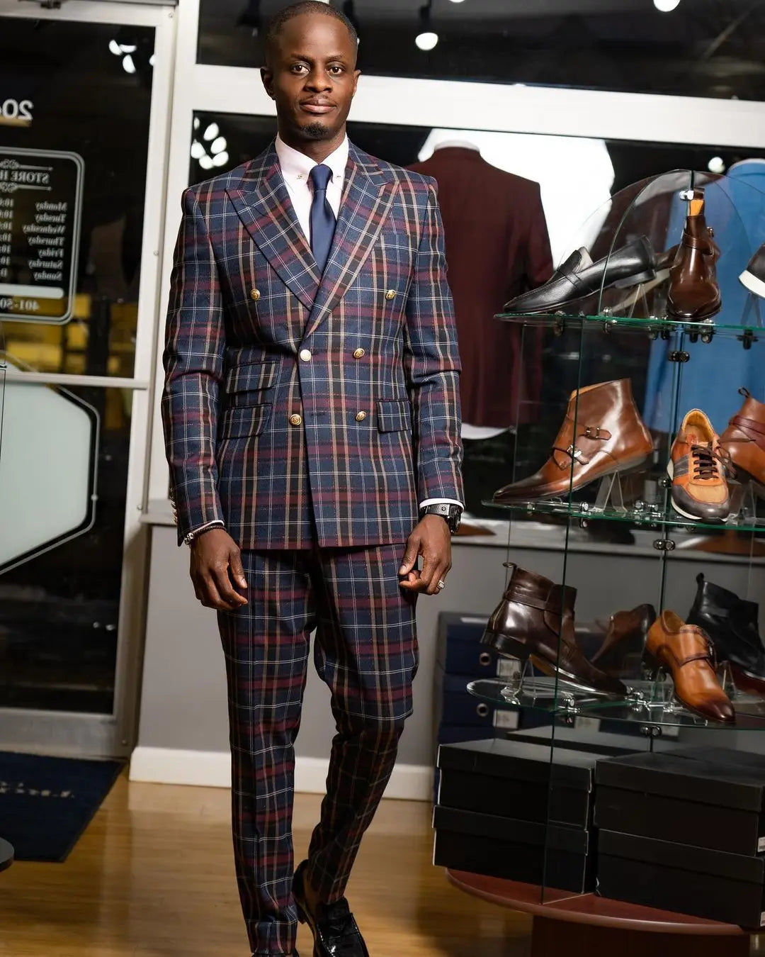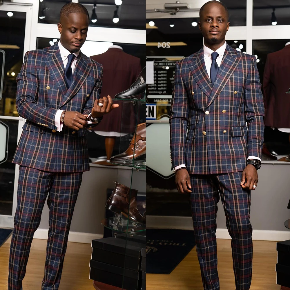 Aidase Casual Men Suits With Two Button Two Pieces Jacket Pants Grid Custom Made Bridegroom Wedding Formal Occasiom