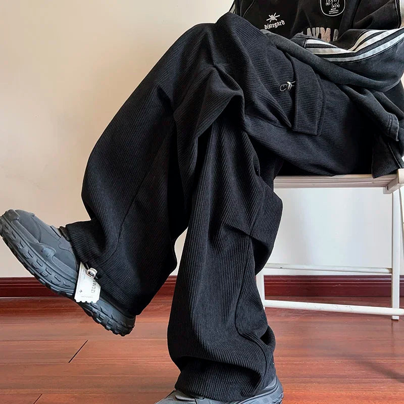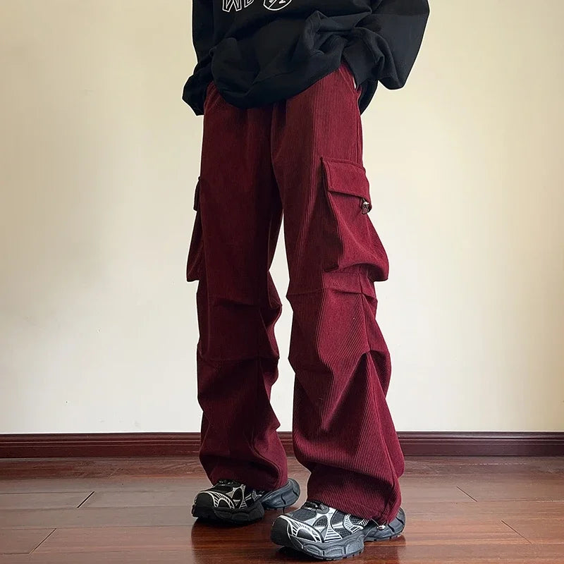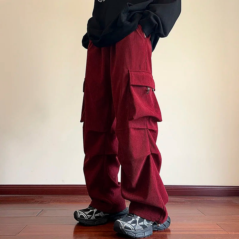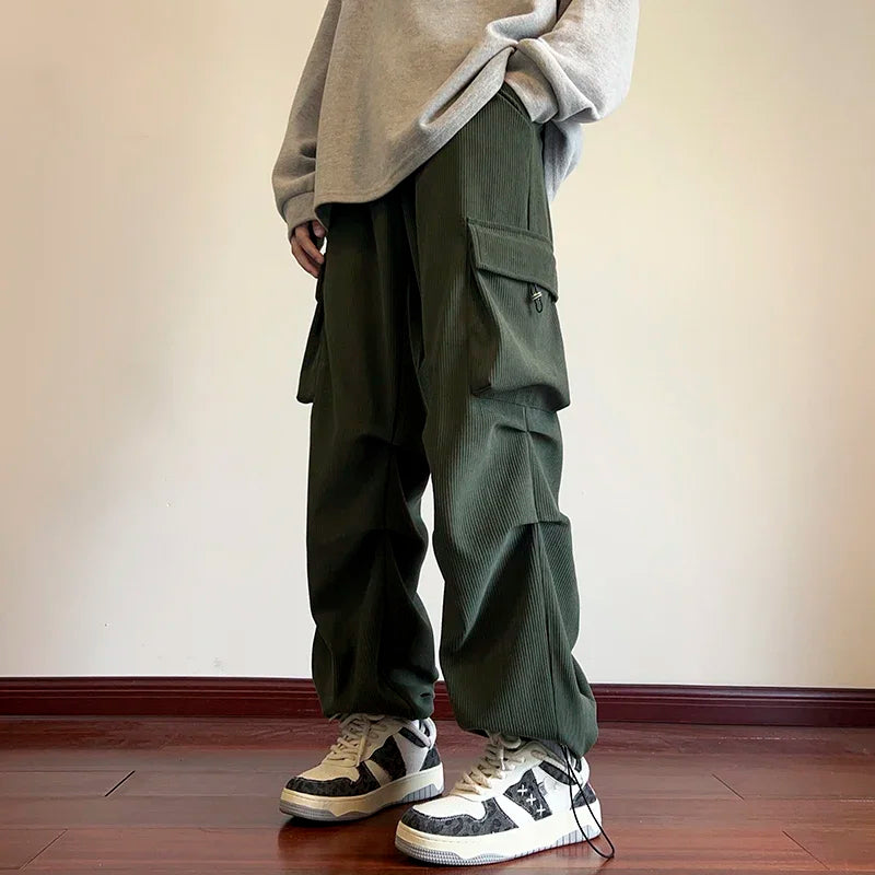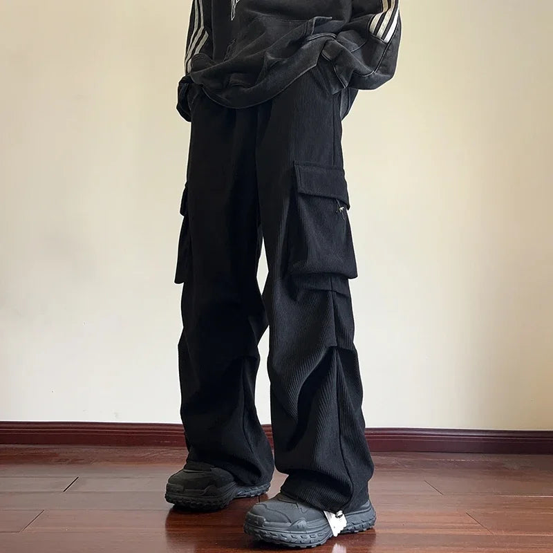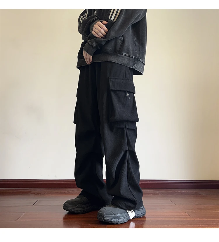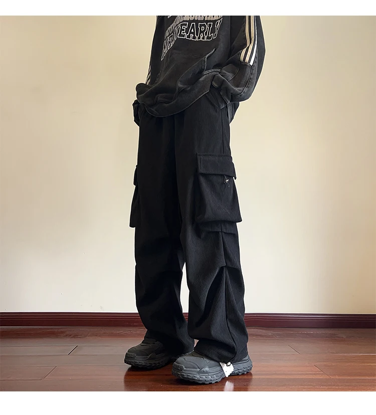 Aidase Corduroy Fabrics Hip Hop Cargo Pants Side Pockets Men's Trousers Fashion Streetwear Large Size Male Casual Pant