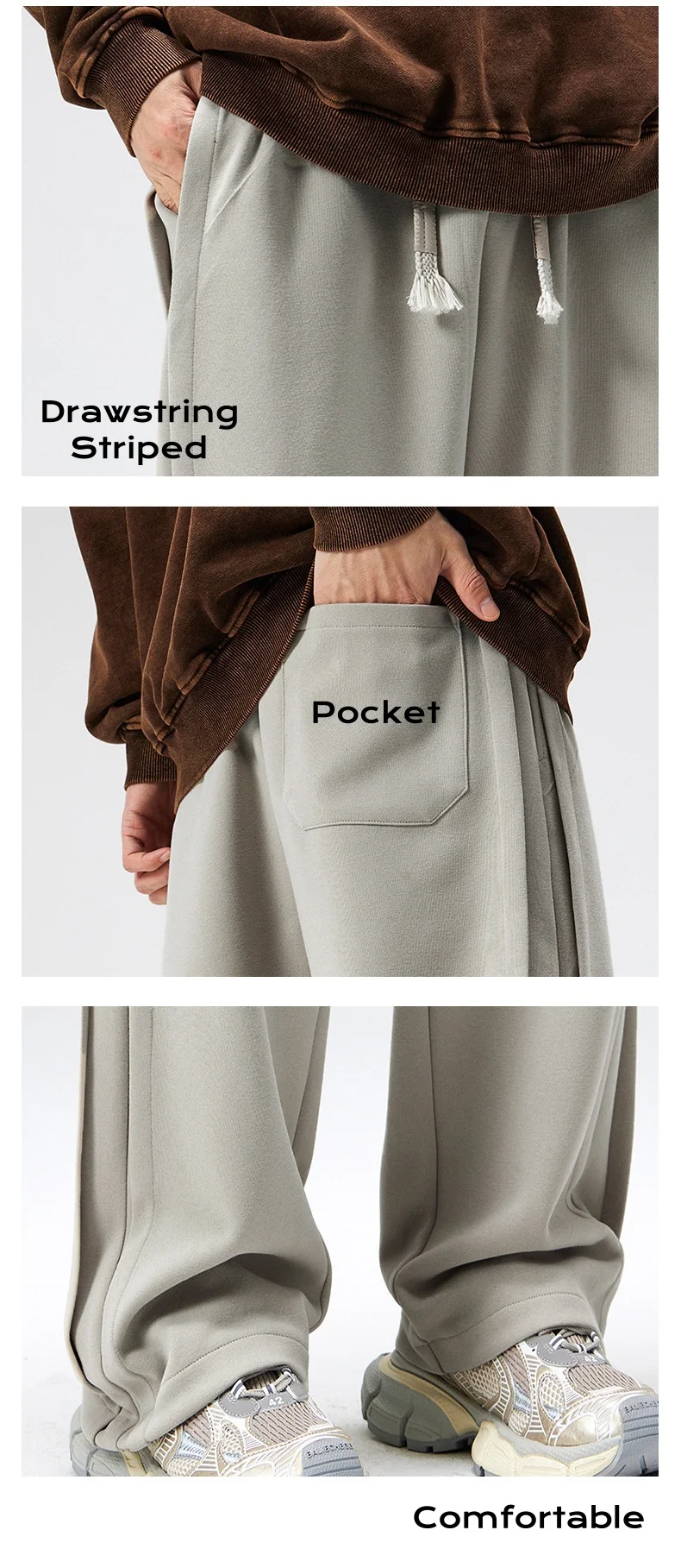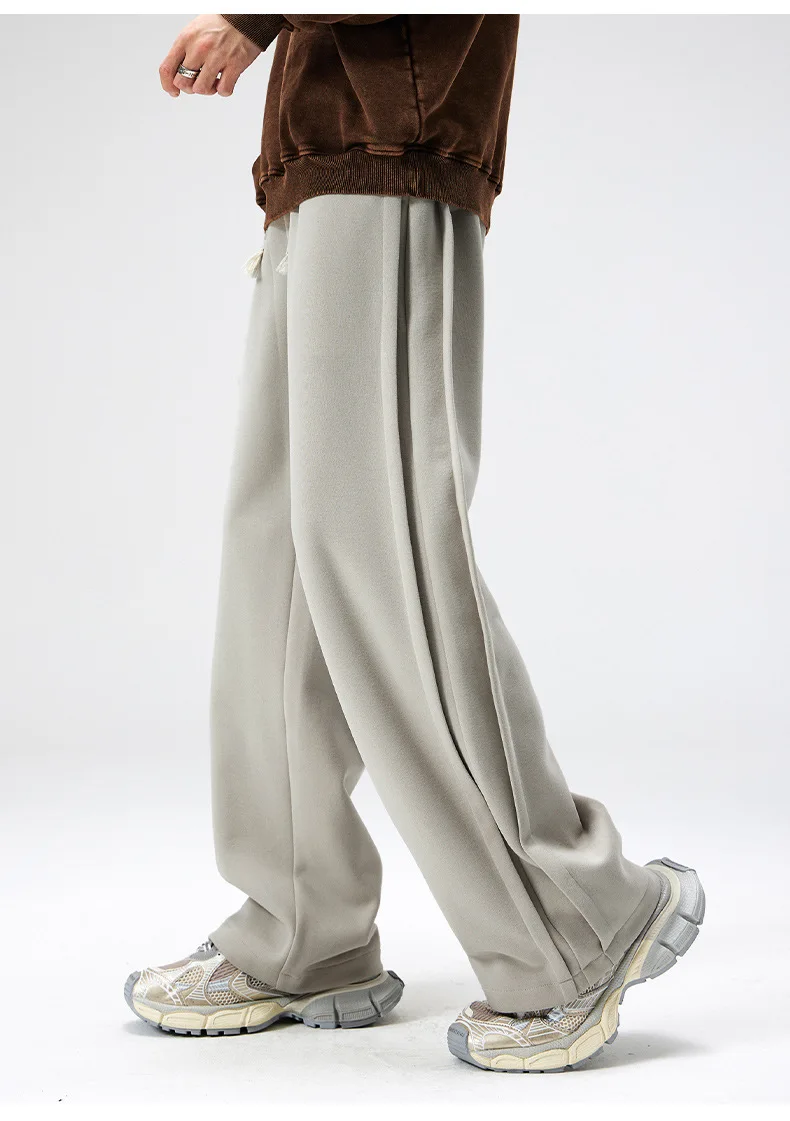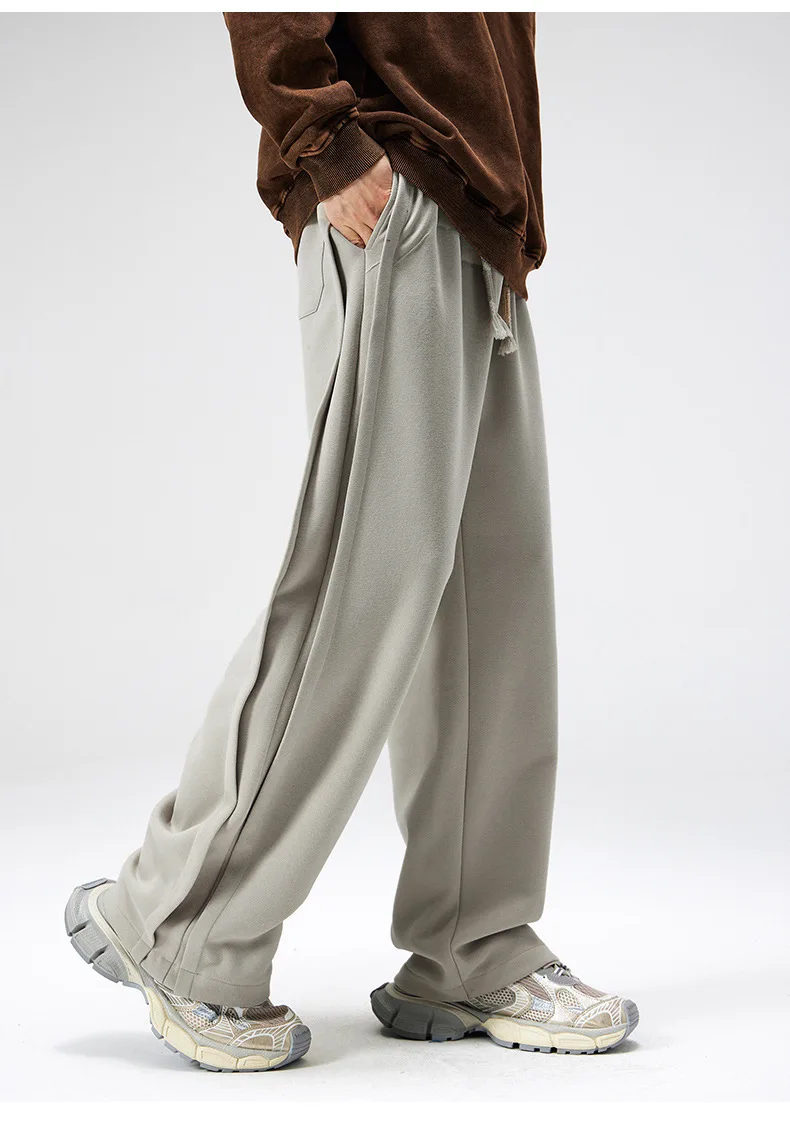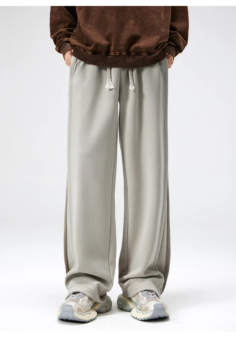 Aidase Cotton Straight Leg Sweatpants Men's Loose Drape Side Stacked Athletic Casual Pants Pleated Soft Breathable Simple Sport