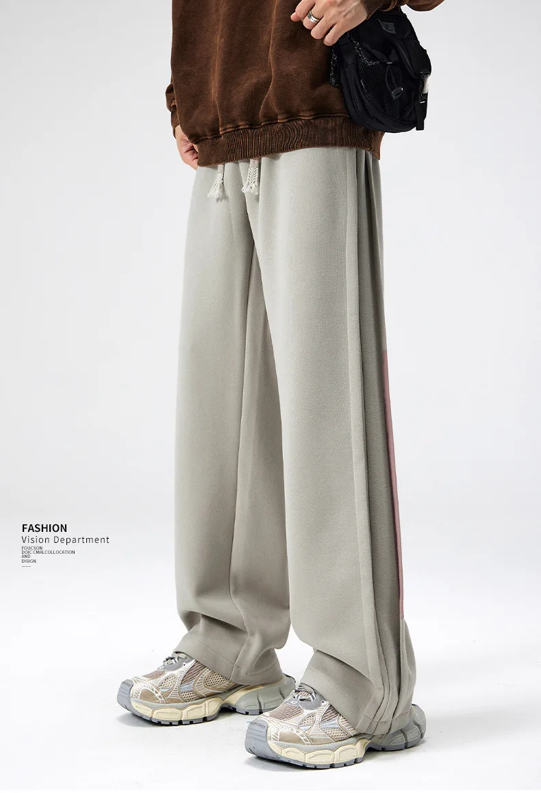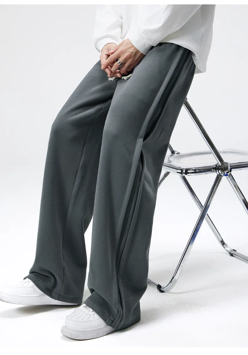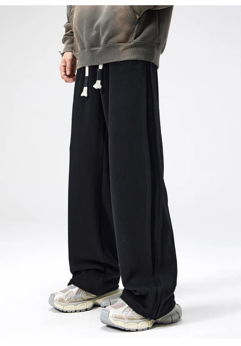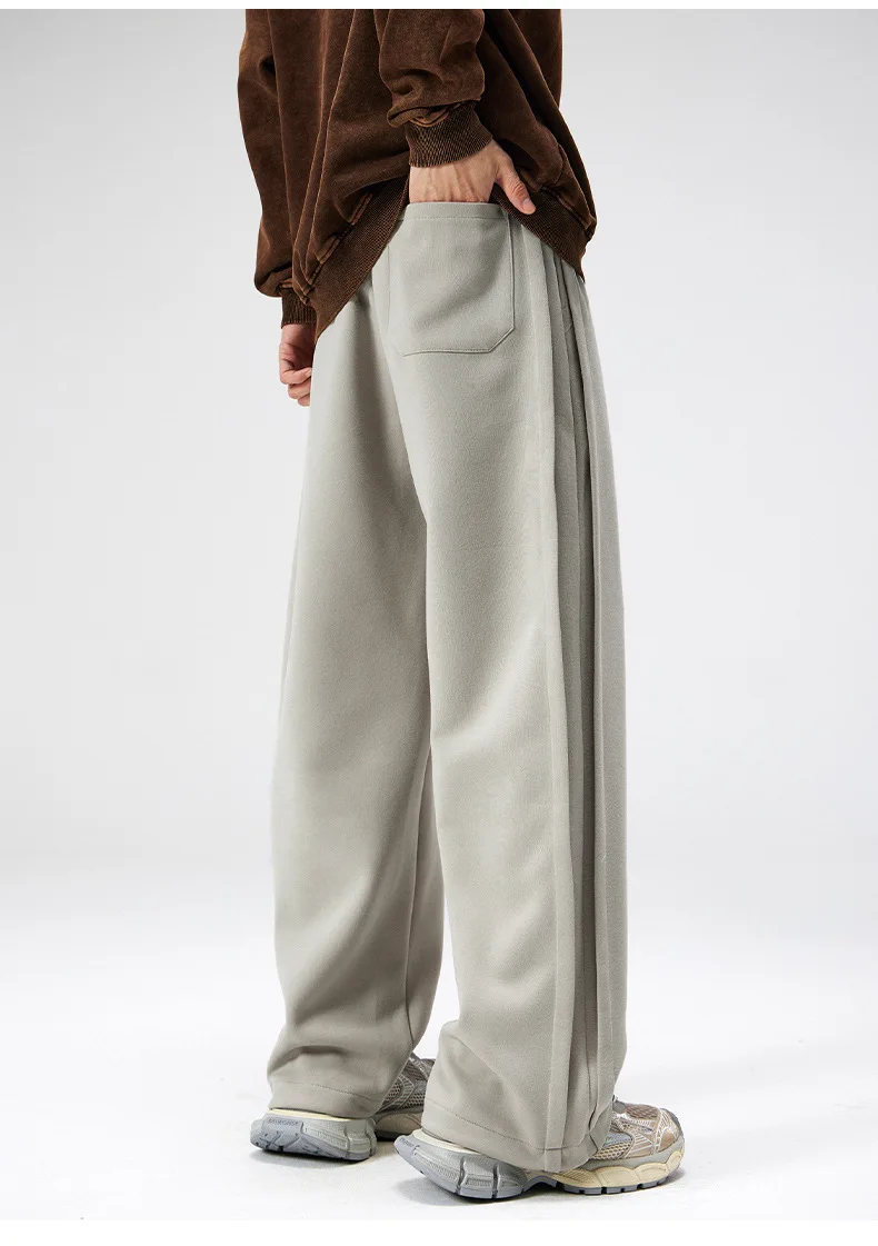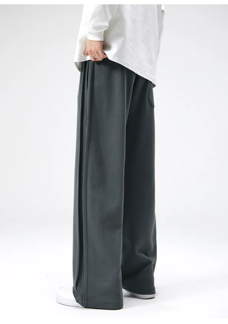 Aidase Cotton Straight Leg Sweatpants Men's Loose Drape Side Stacked Athletic Casual Pants Pleated Soft Breathable Simple Sport