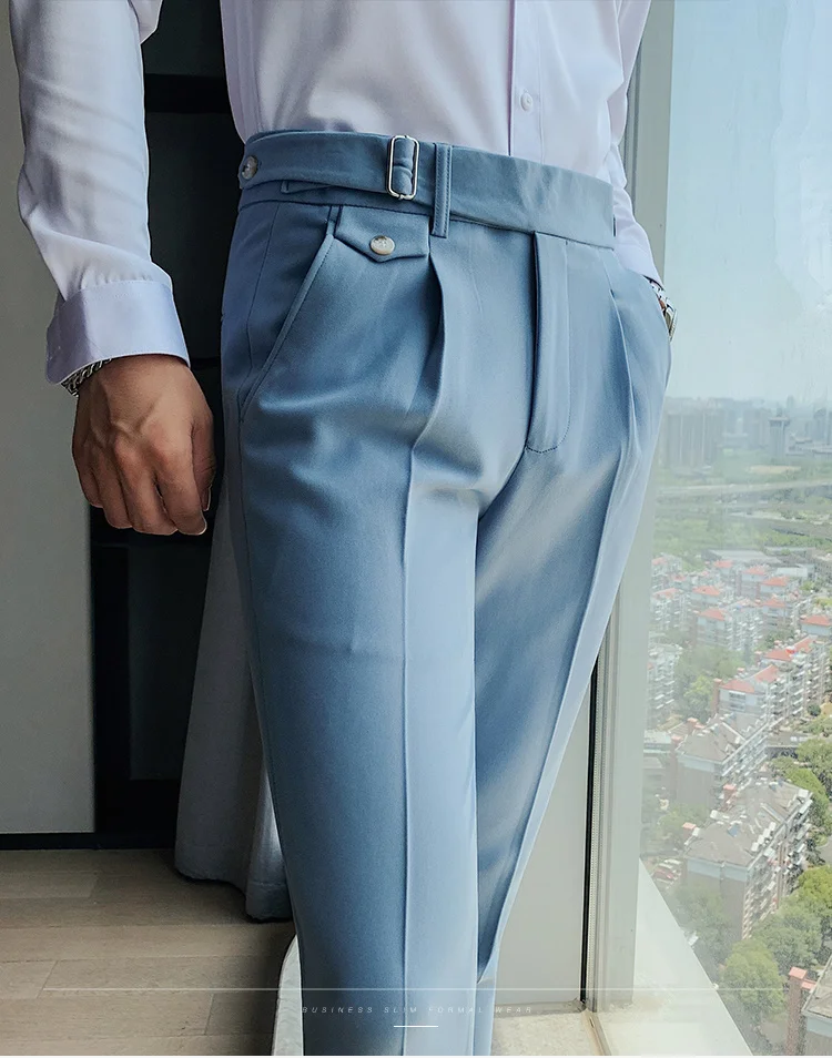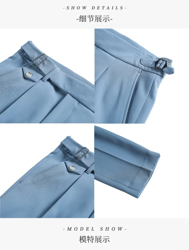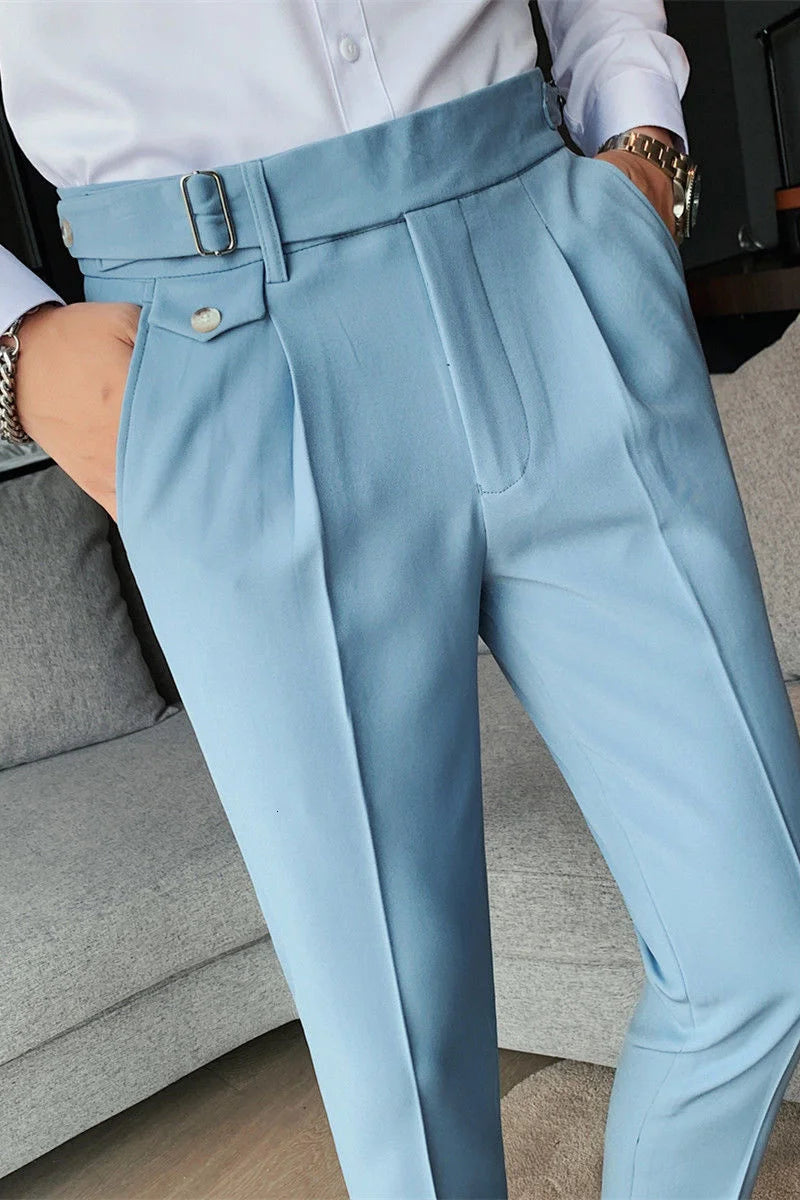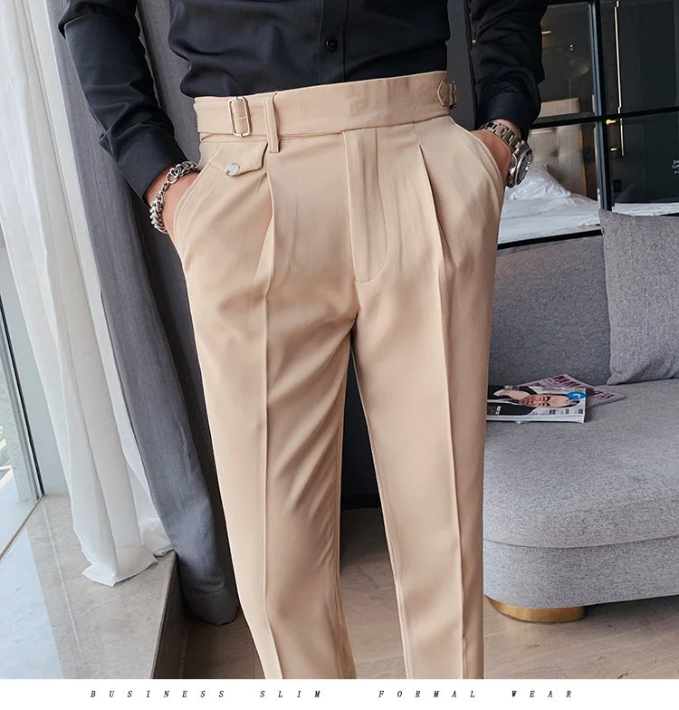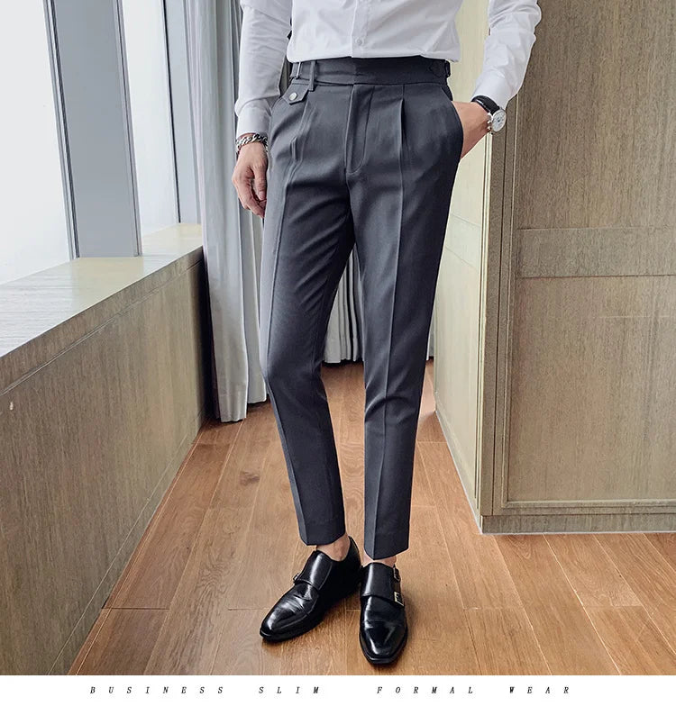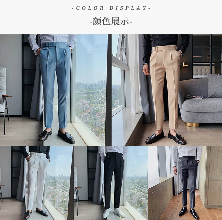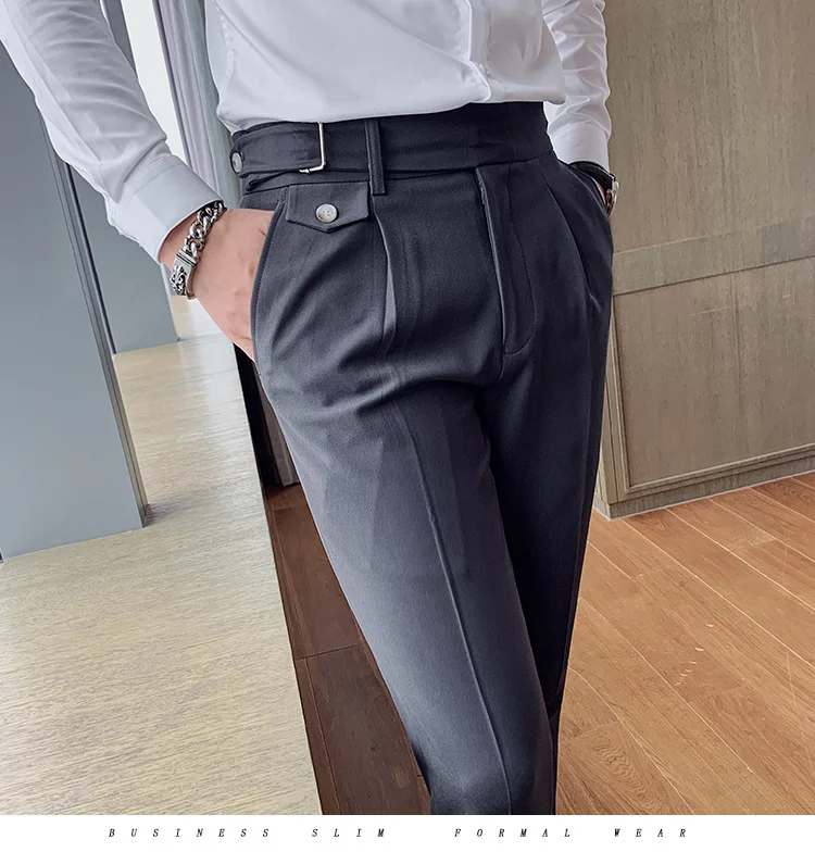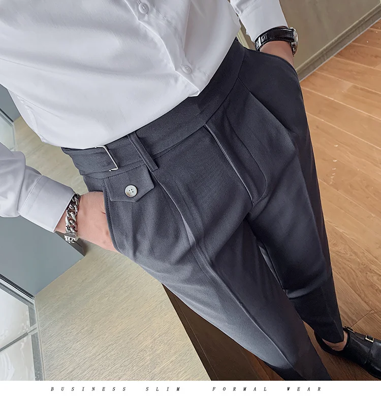 Four Season belt Buttoned Calf Pant Men Pantalon De Vestir Hombre Casual Luxury Business Pant Trouser Pant For Man straight pant