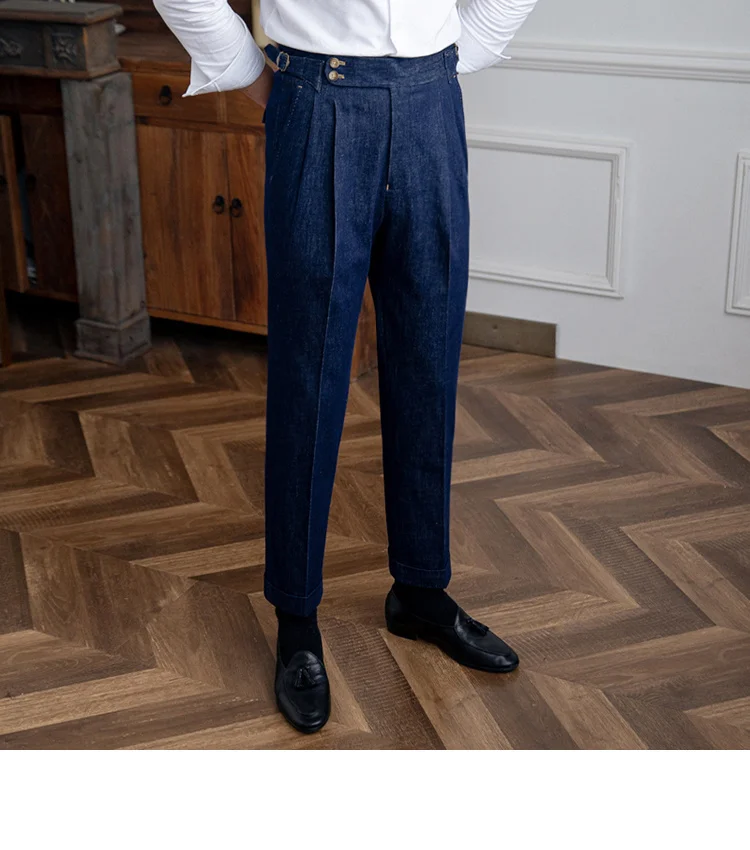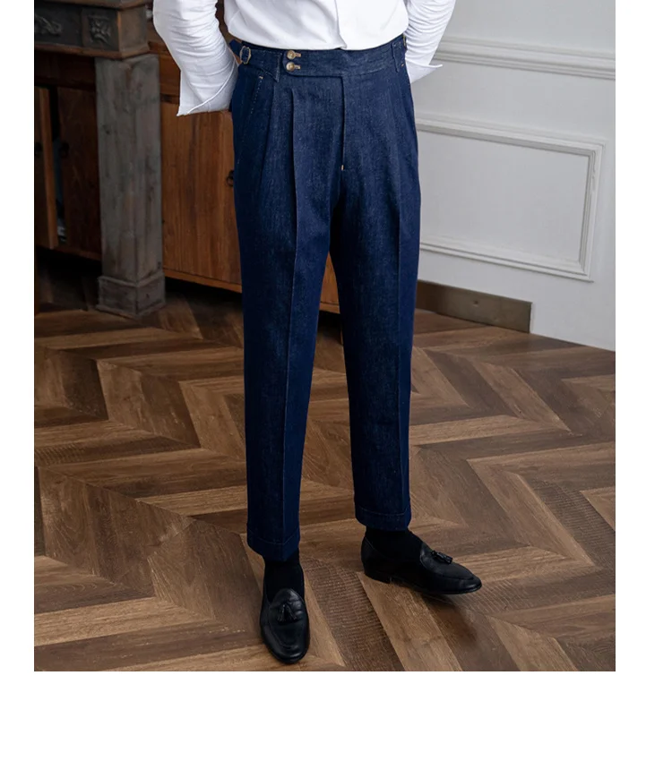 High Quality Italy Business Dress Pants Men Office Social Suit Pants Casual Wedding Groom Trouser Pantaloni Uomo Casual Blue