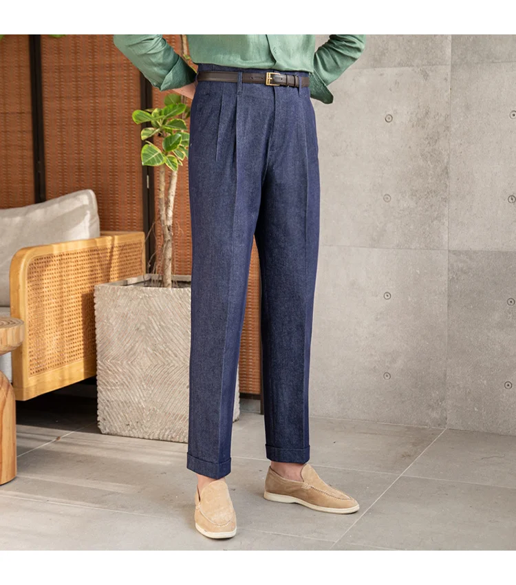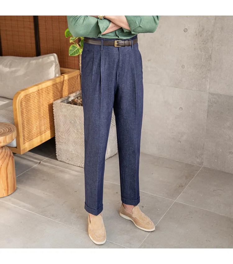 AIDASE - High Waist Trousers Pant For Man OfficeTrouser Business Casual Pant British Social Club Outfits Pantalones Hombre Excluding Belt