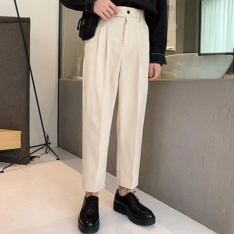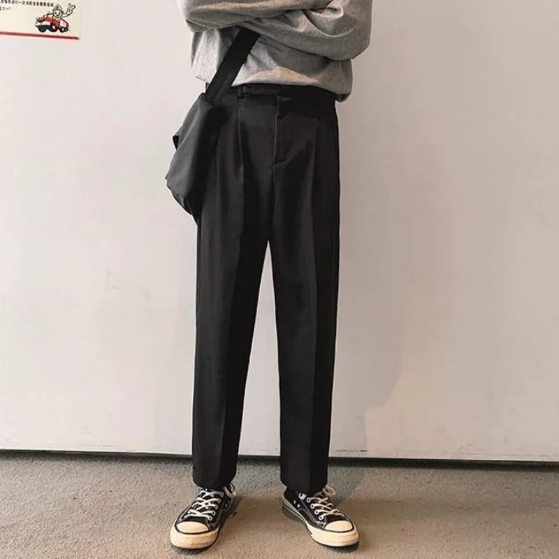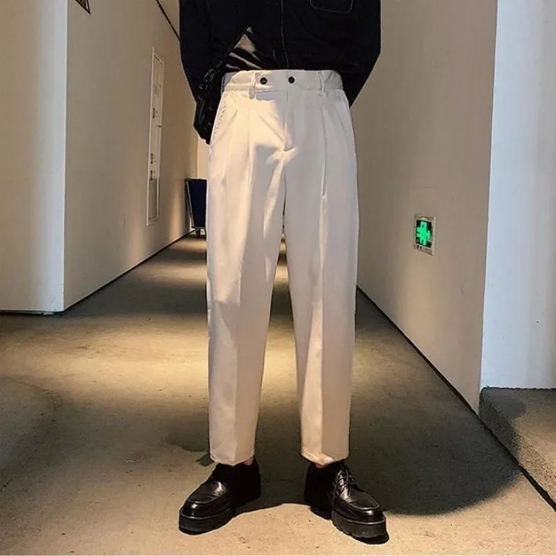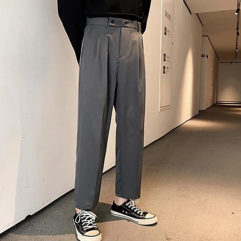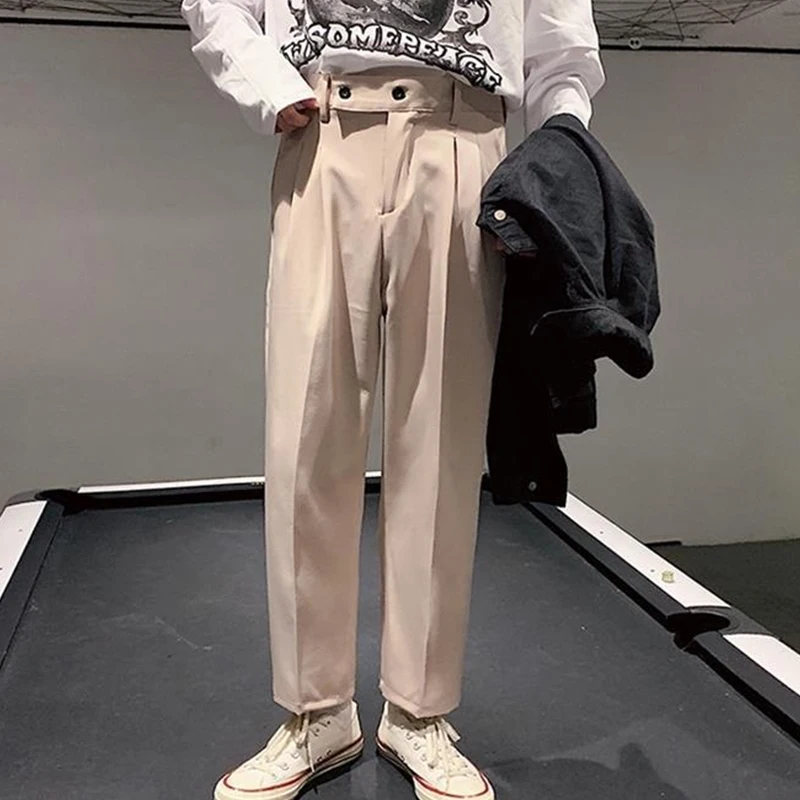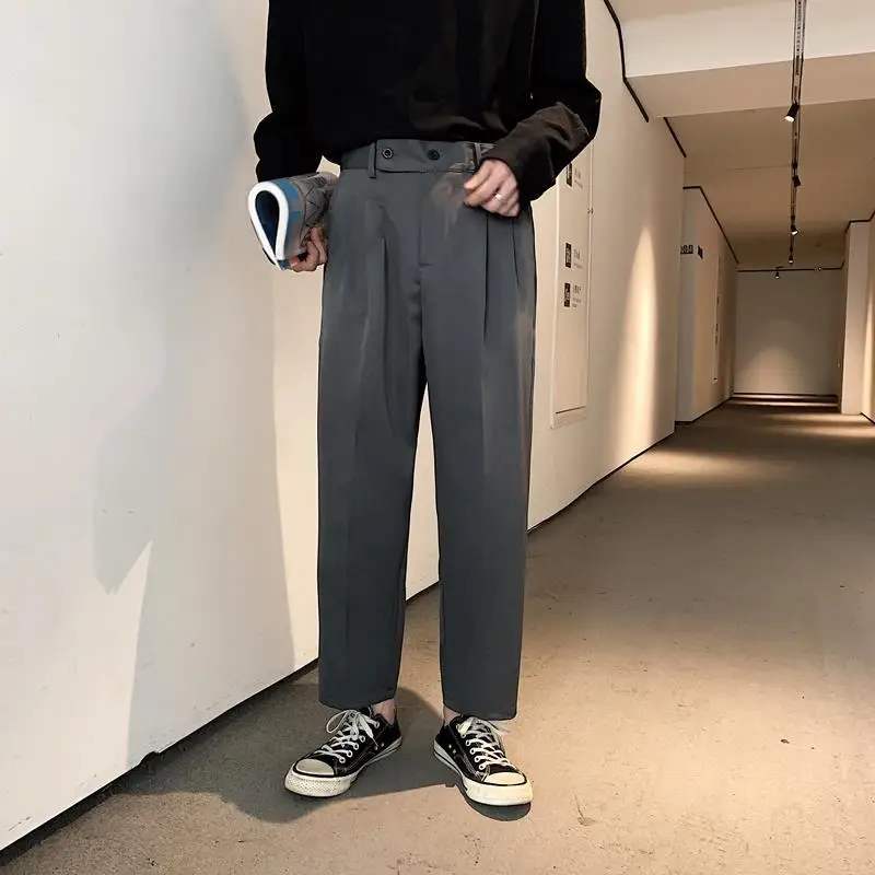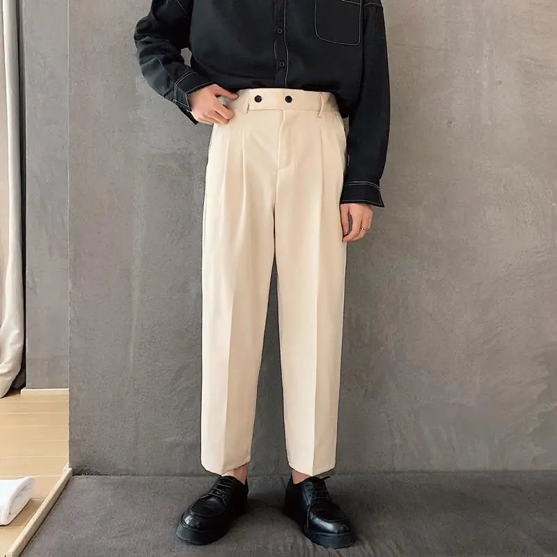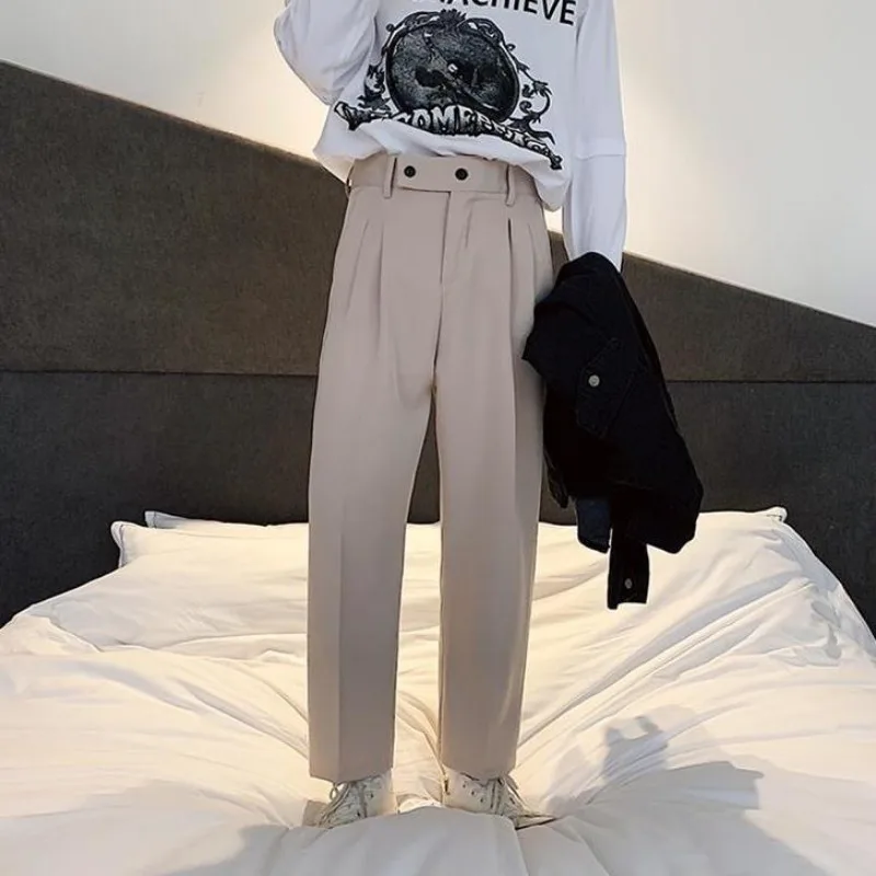 Aidase Hong Kong Style Summer Casual Pants Men Loose Straight Nine-point Pants Korean Style Casual Versatile Iron-free Suit