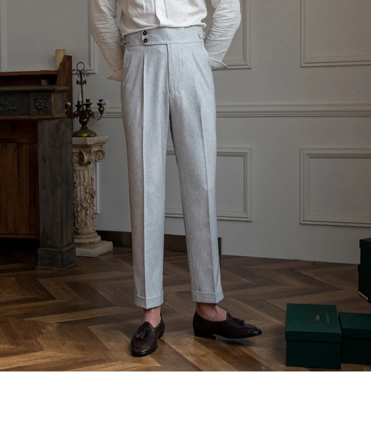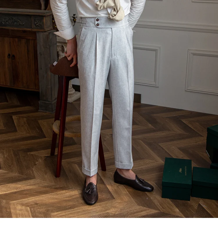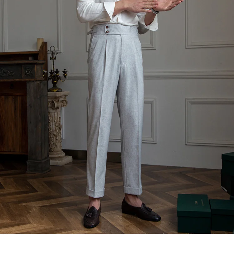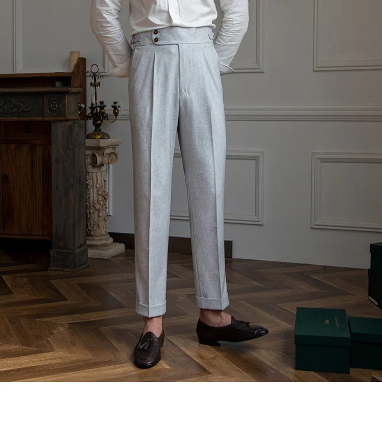 Italy Business Dress Pants Men High Quality Office Social Suit Pants Casual Wedding Groom Trousers Gray Pantaloni Uomo Casual