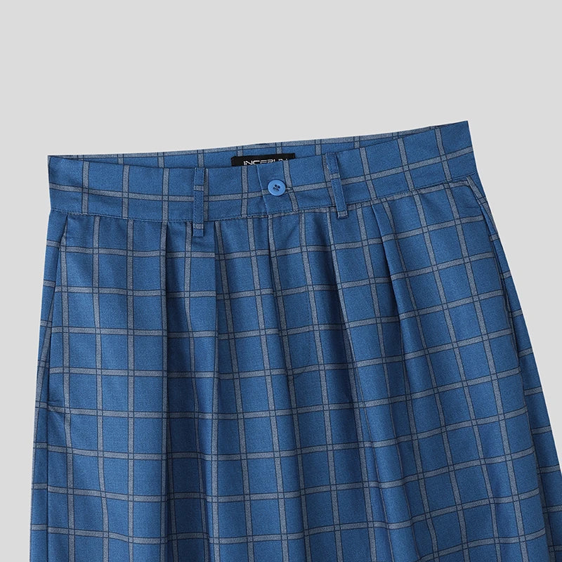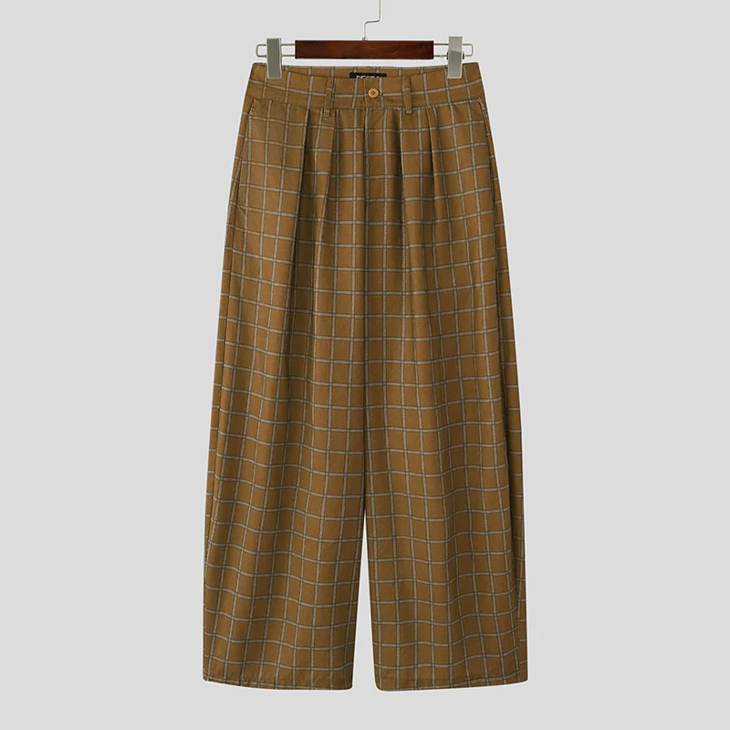 AIDASE  -  Men Pants Plaid Button Joggers Loose Casual Wide Leg Trousers Men Streetwear 2025 Pleated Oversize Fashion Long Pants