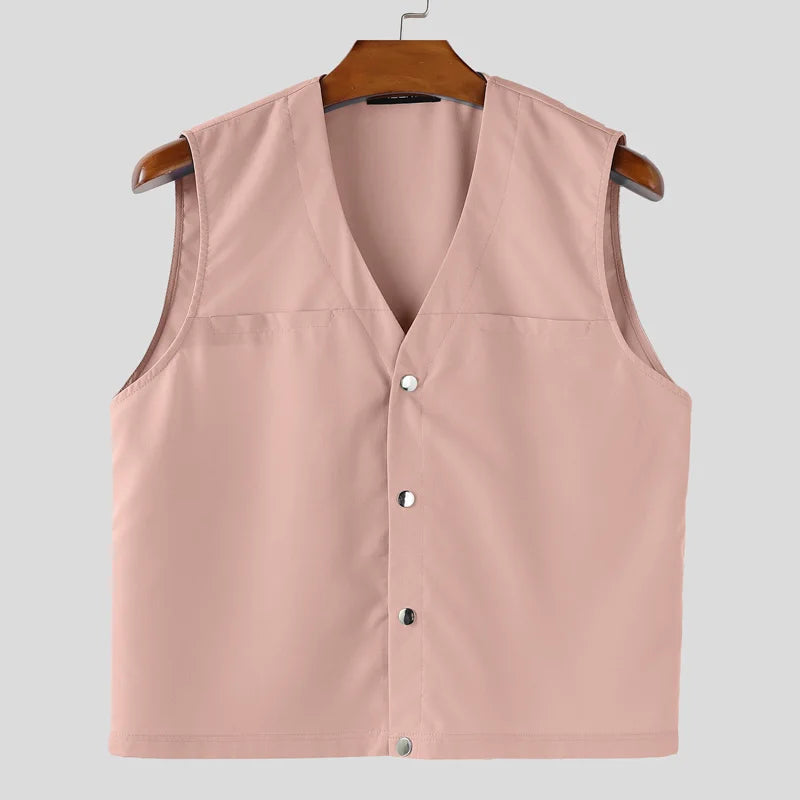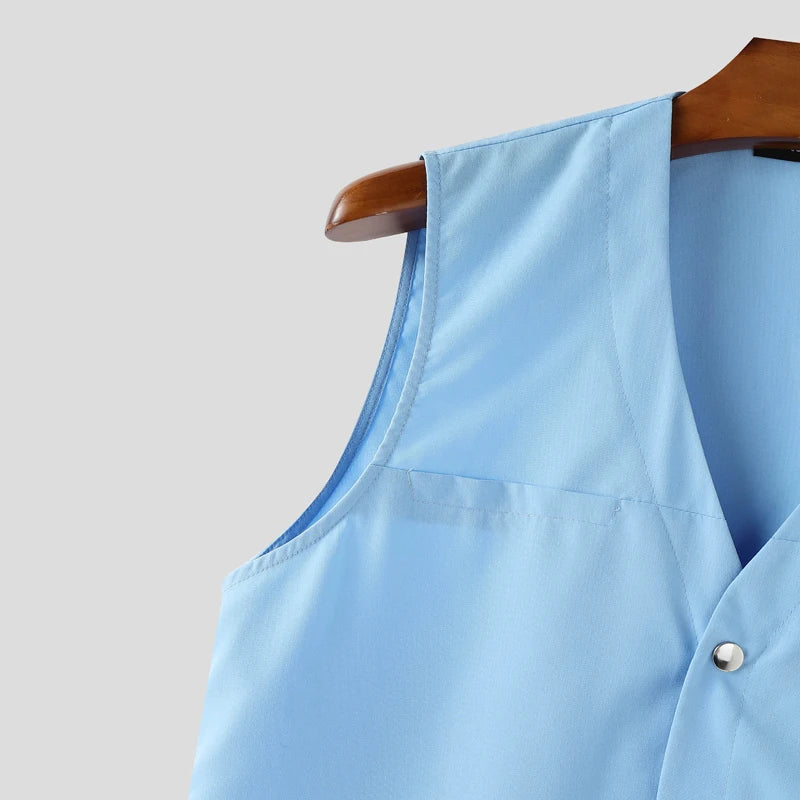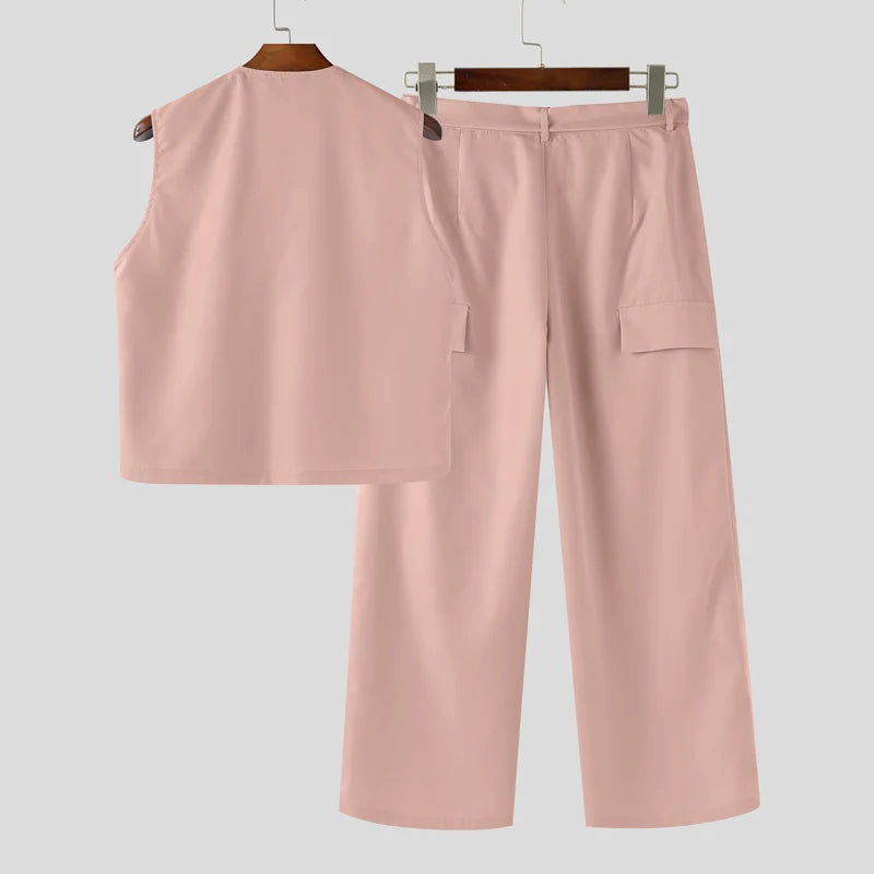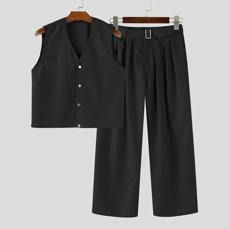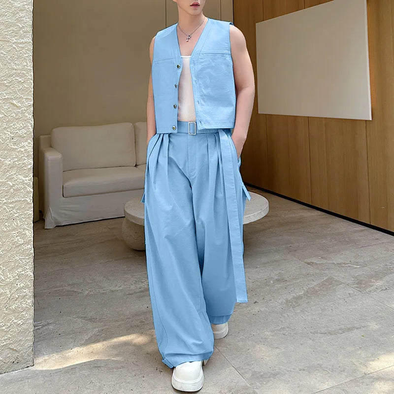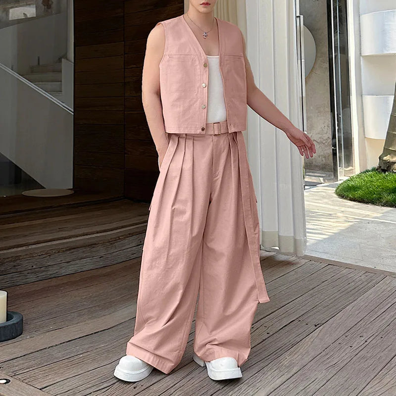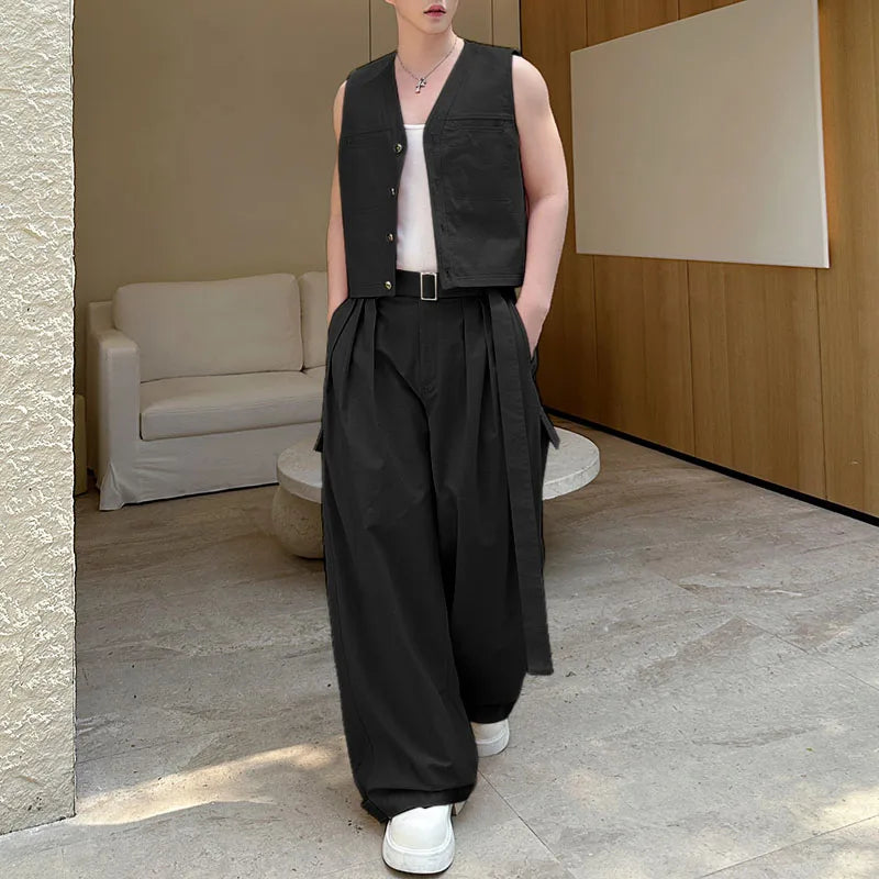 AIDASE - Men Sets Solid Color V Neck Sleeveless Vests & Pleated Pants Two Pieces Sets Streetwear Loose 2025 Men's Casual Suits