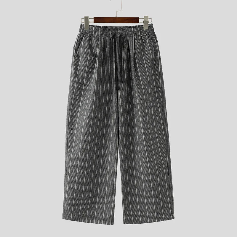 AIDASE - Men Striped Pants Drawstring Joggers Loose Casual Trousers Men Streetwear 2025 Fashion Leisure Male Long Pants S-5XL