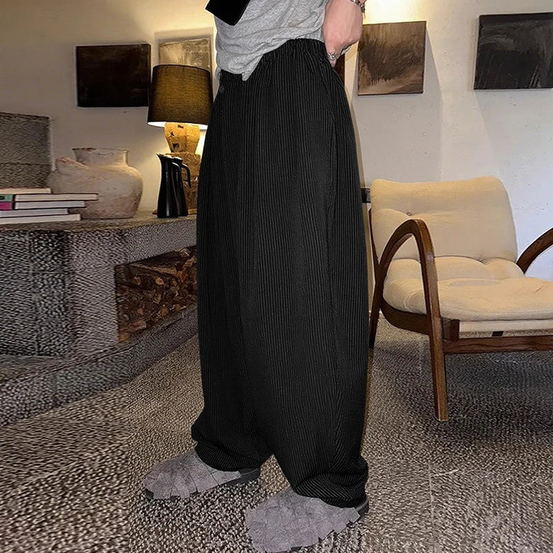AIDASE - Men Striped Pants Joggers Elastic Waist Loose Korean Style Trousers Men Streetwear 2025 Pleated Casual Long Pants S-5XL
