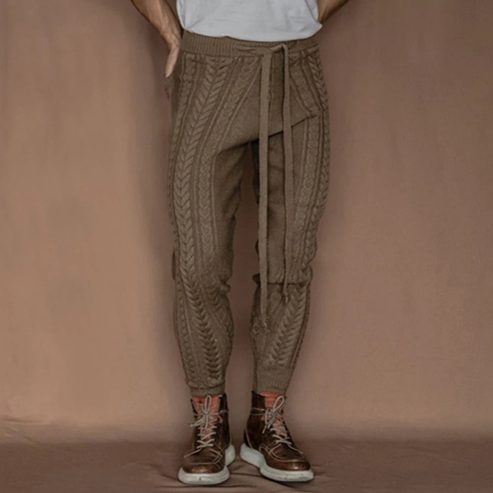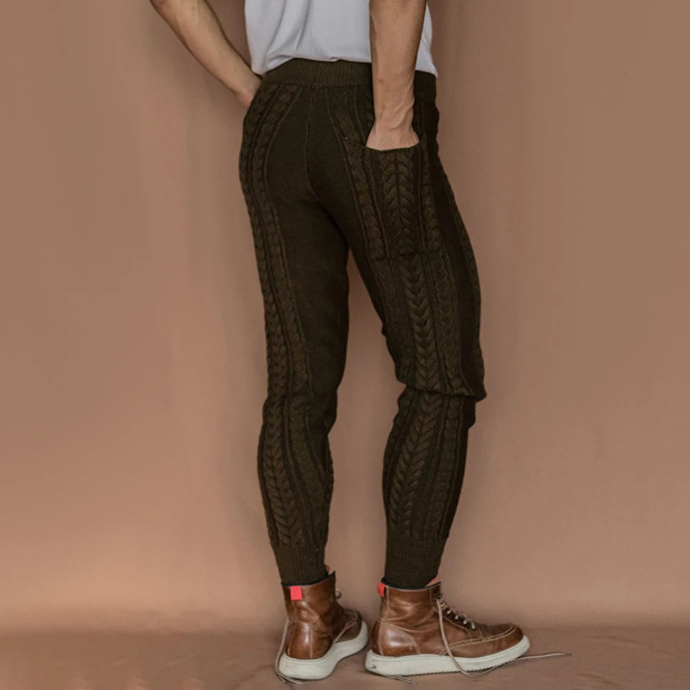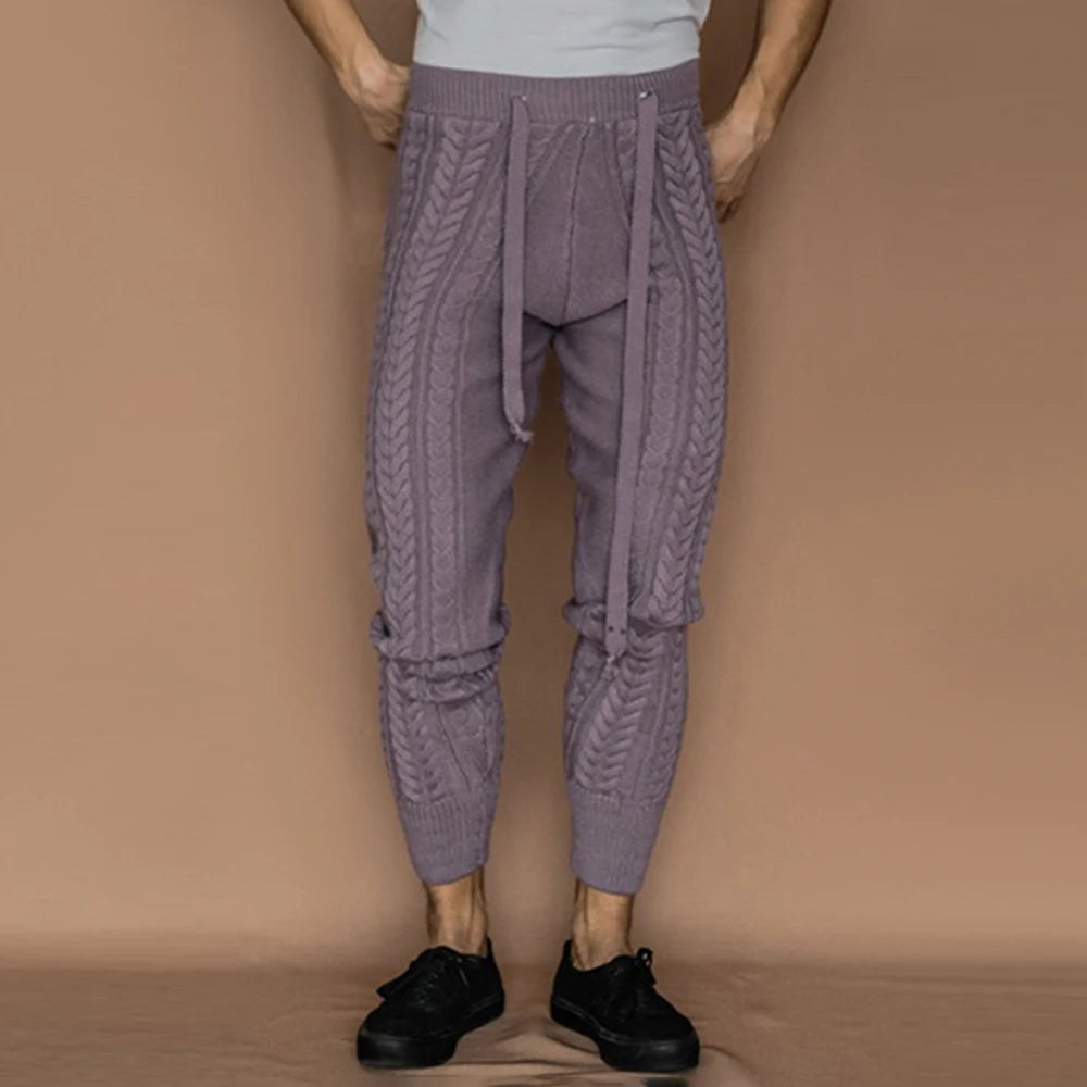 Aidase Mens Slim-Fitting Twists Pattern Casual Knitted Pants Autumn Winter Genderless Fashion Trend Knitted Ribbed Cuff Trousers Unisex