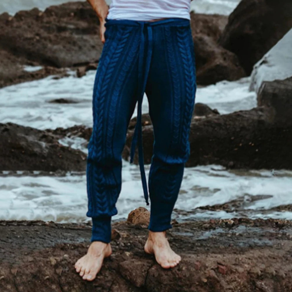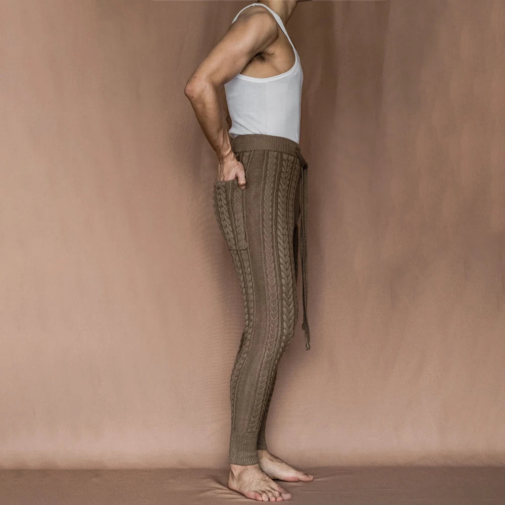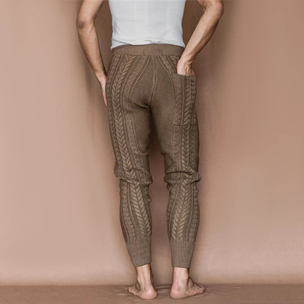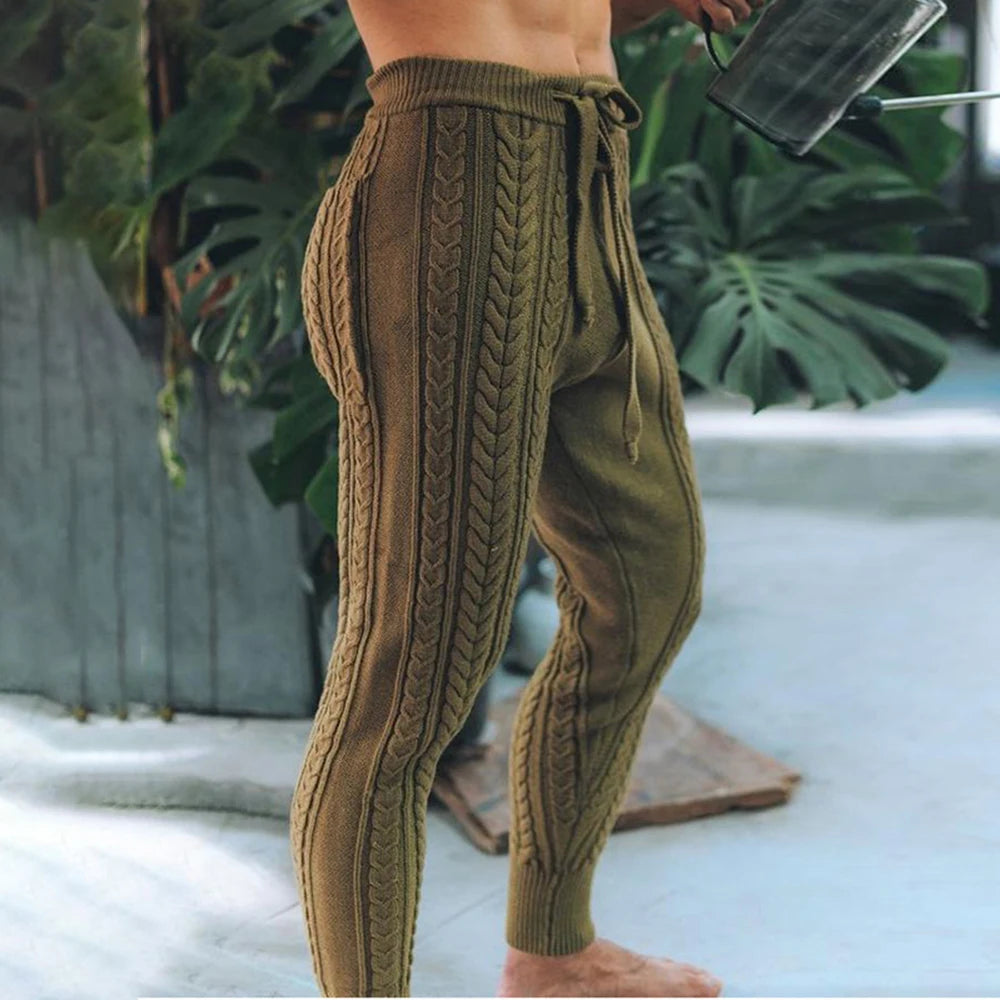 Aidase Mens Slim-Fitting Twists Pattern Casual Knitted Pants Autumn Winter Genderless Fashion Trend Knitted Ribbed Cuff Trousers Unisex