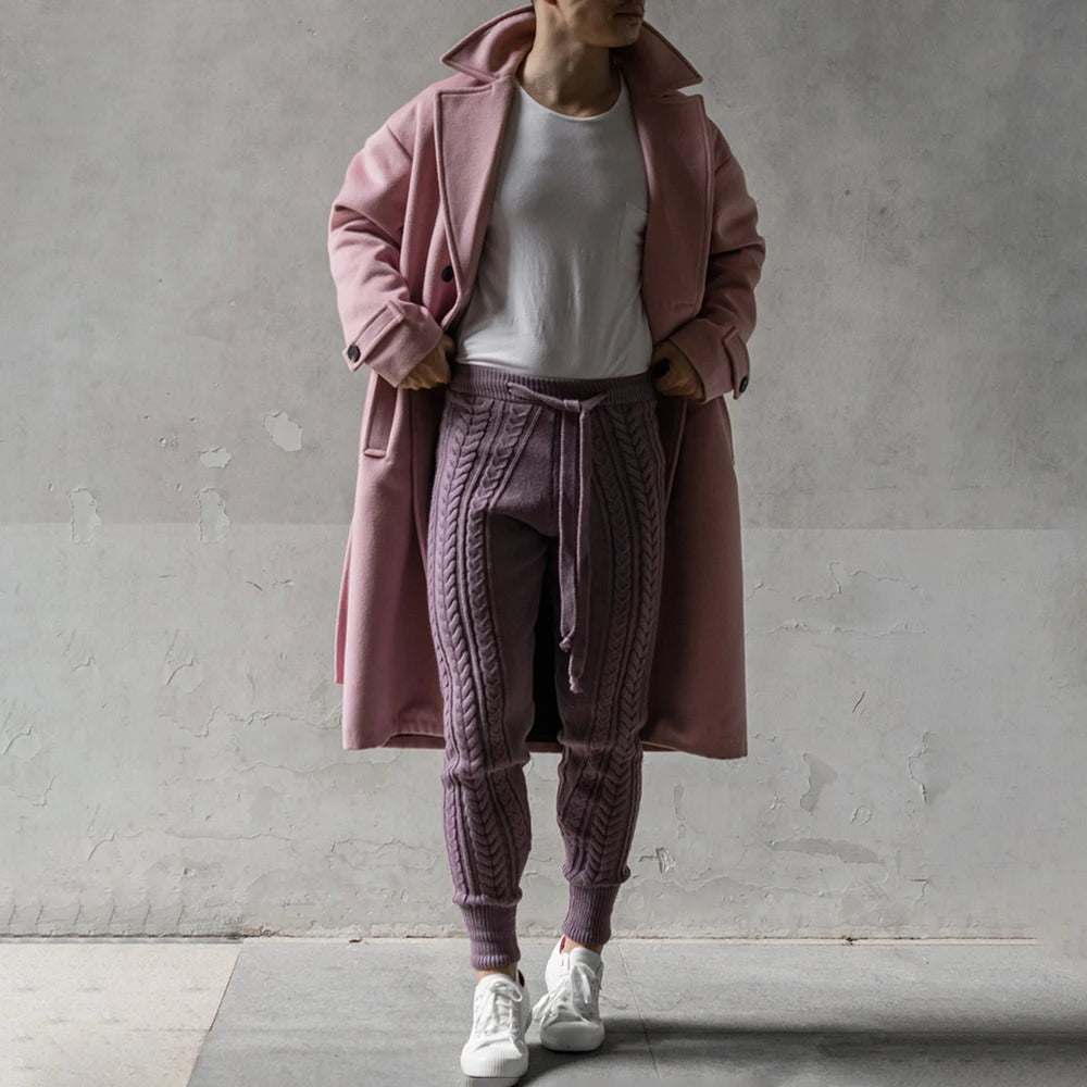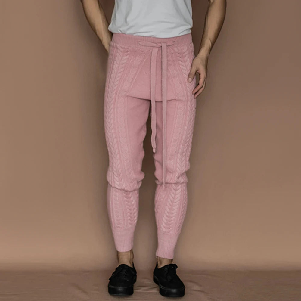Mens Slim-Fitting Twists Pattern Casual Knitted Pants Autumn Winter Genderless Fashion Trend Knitted Ribbed Cuff Trousers Unisex