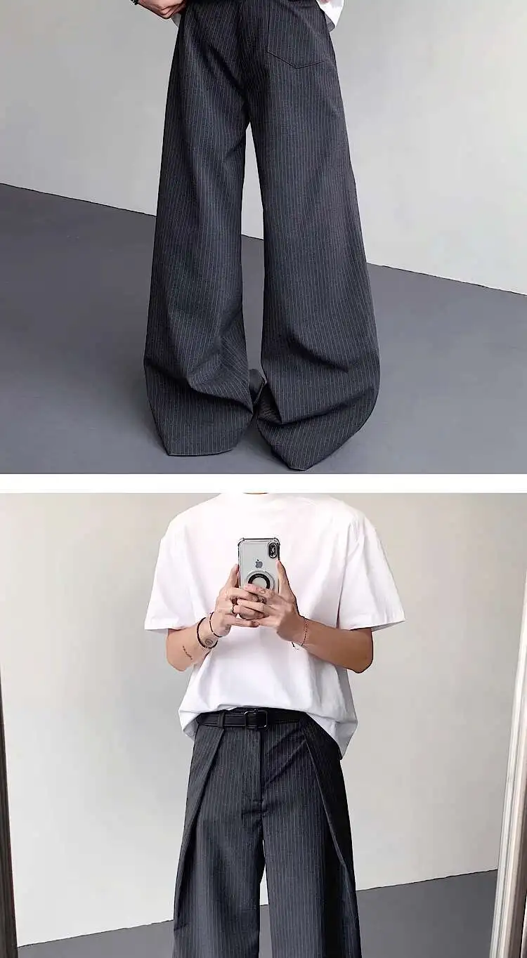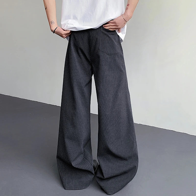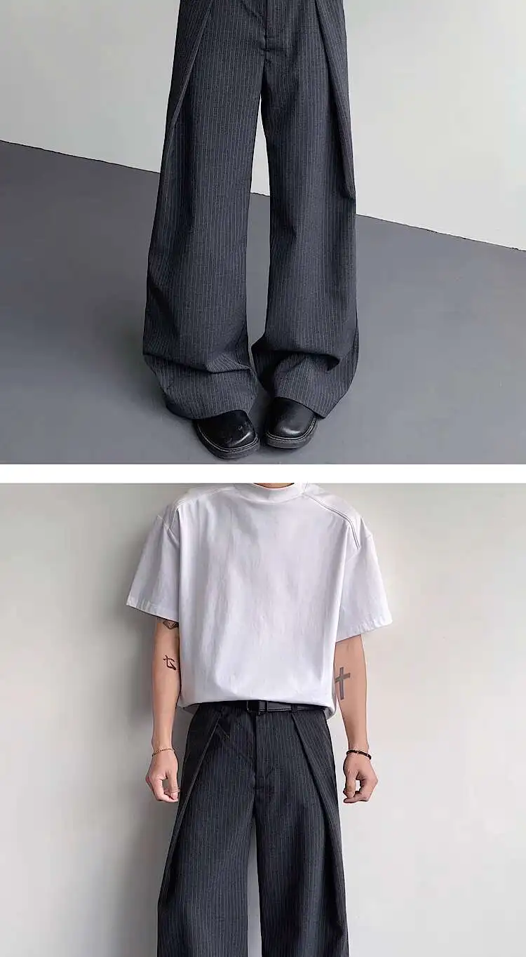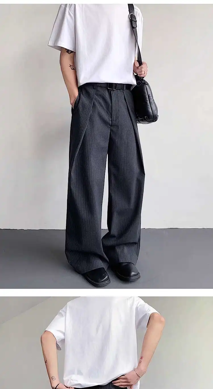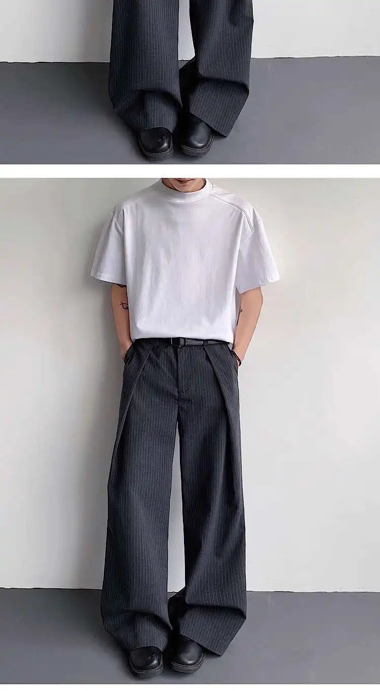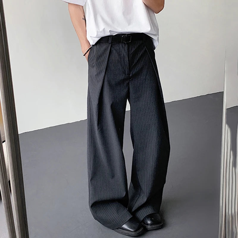 AIDASE - Men's Suit Pants Striped Three-dimensional Arc Single Pleat Design Loose Casual 2025 New Fashion Straight Trousers
