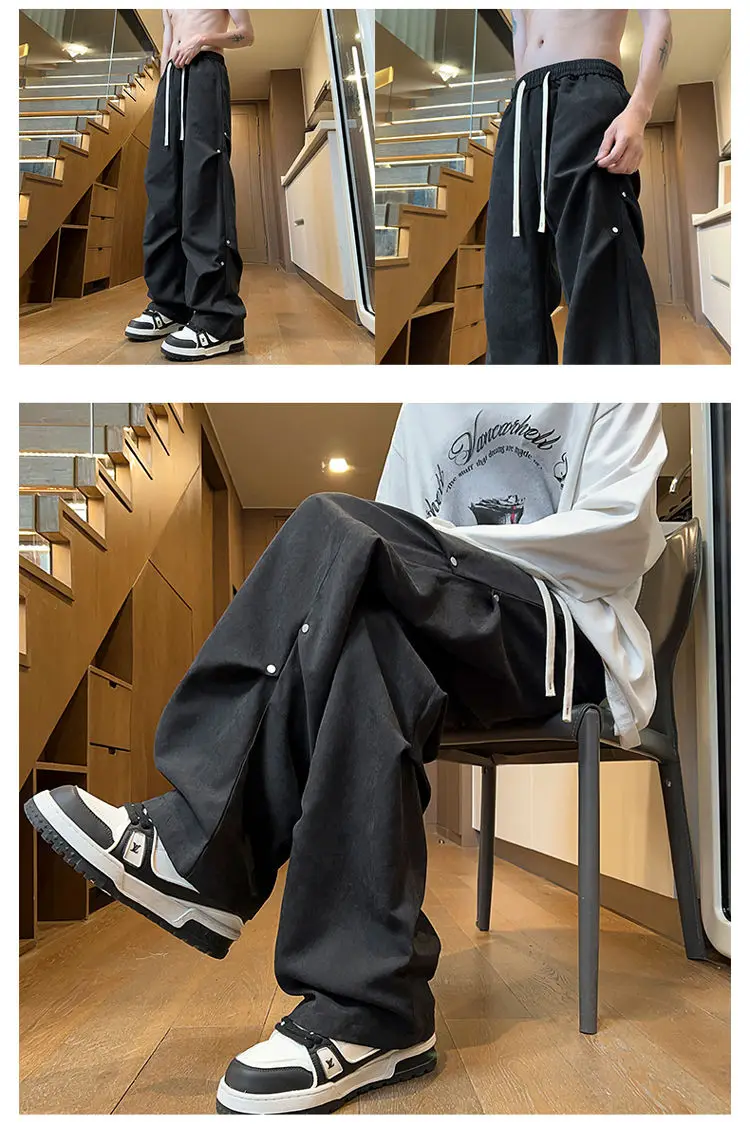 AIDASE - Men's Summer Thin Fashion Brand American Vibe Pants Loose Straight Wide-leg Casual Trousers