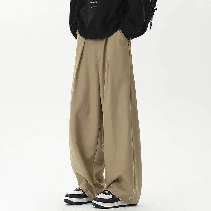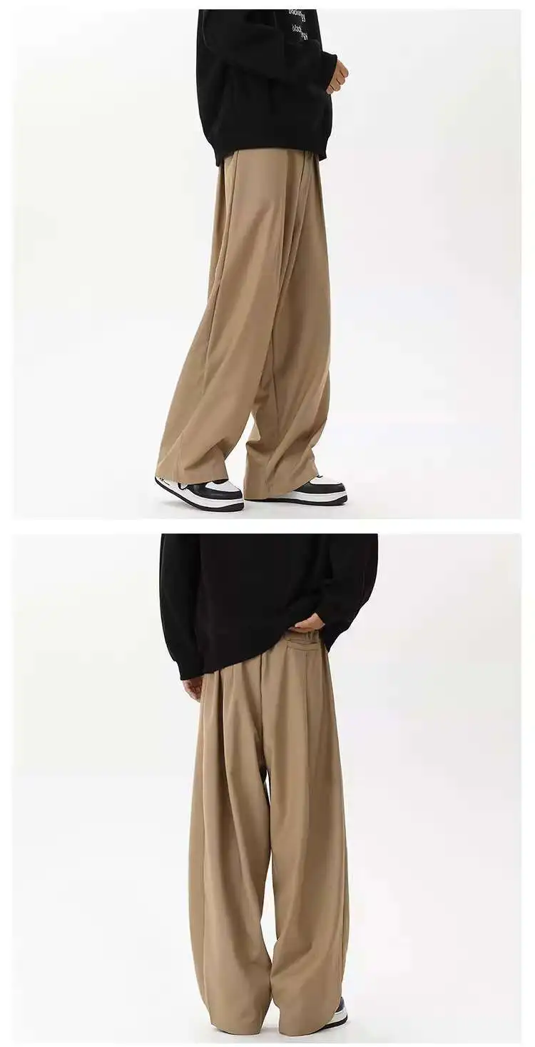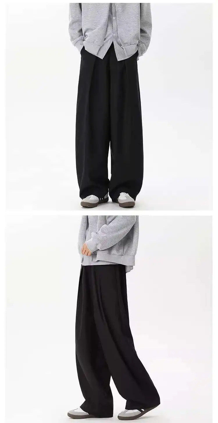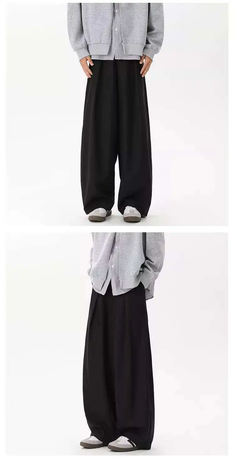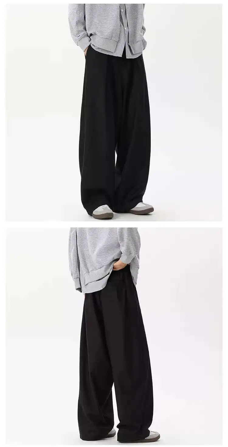 AIDASE - Men's Wide-Leg Trousers Trend Loose Straight -leg Casual Pants High Street Stylish Solid Color All-match Clothing