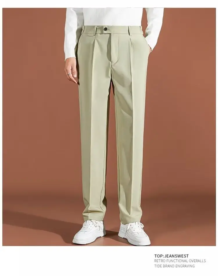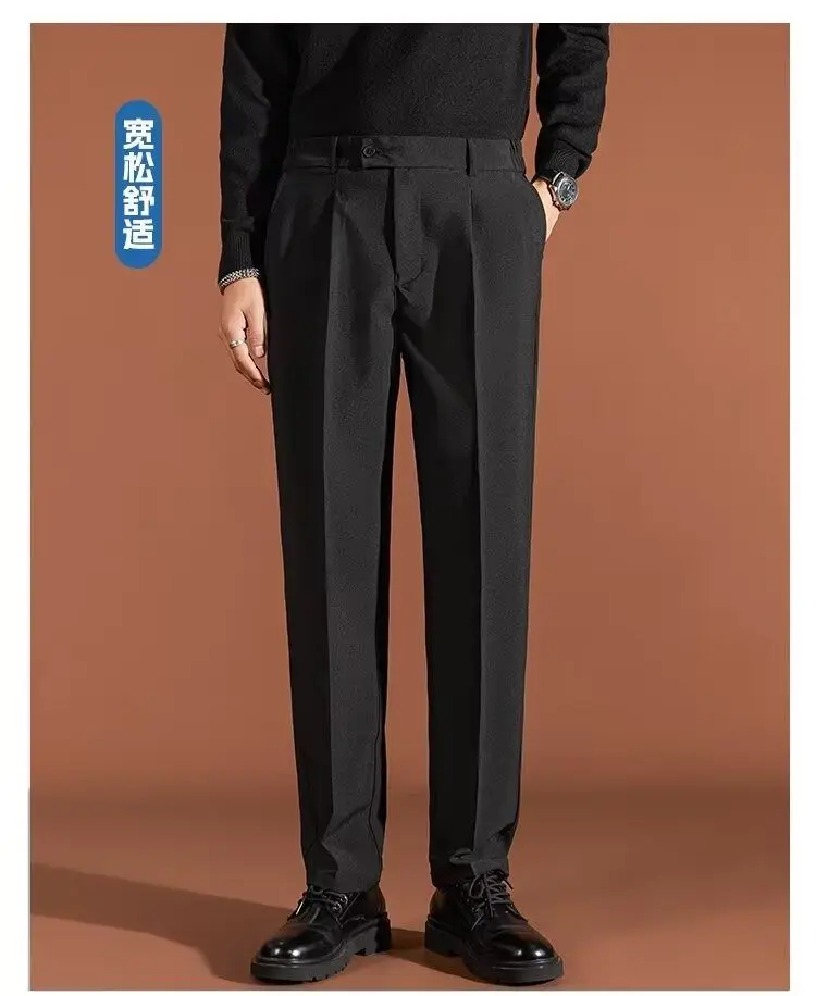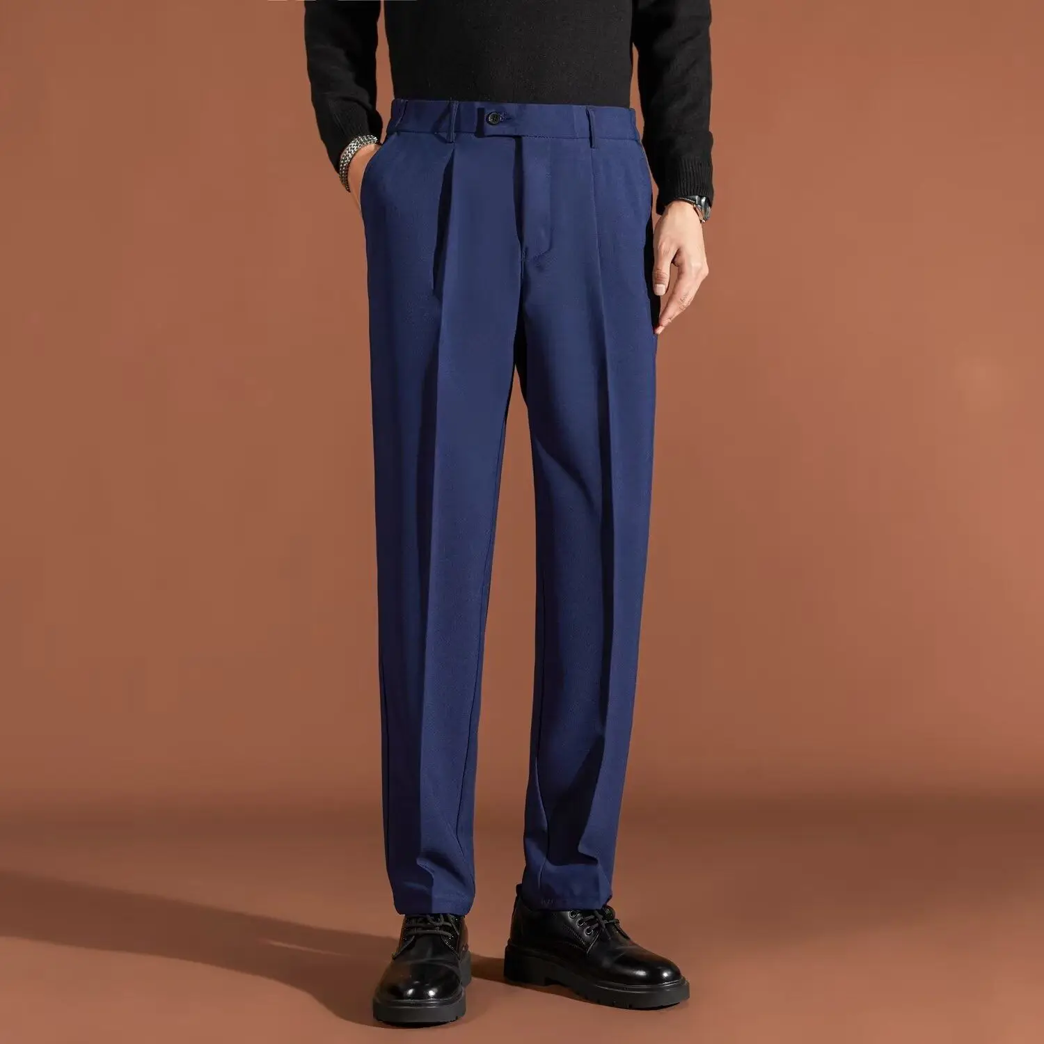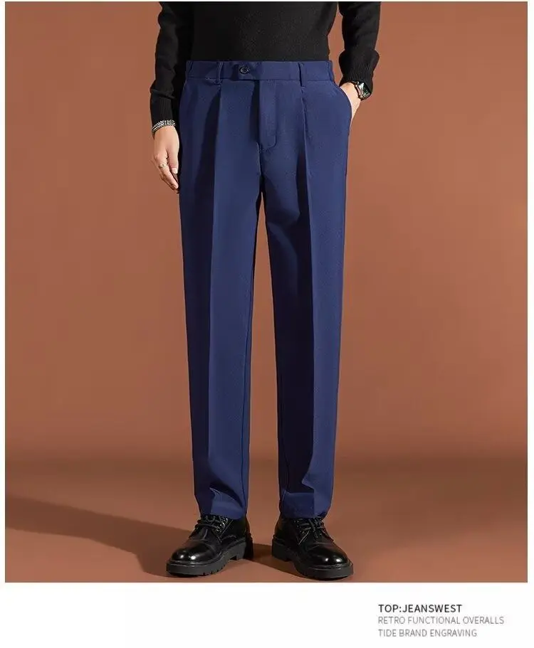 AIDASE - Navy Blue British Trendy and Fashionable Drooping Trousers for Men's Tapered Casual Straight Business Suit Pants