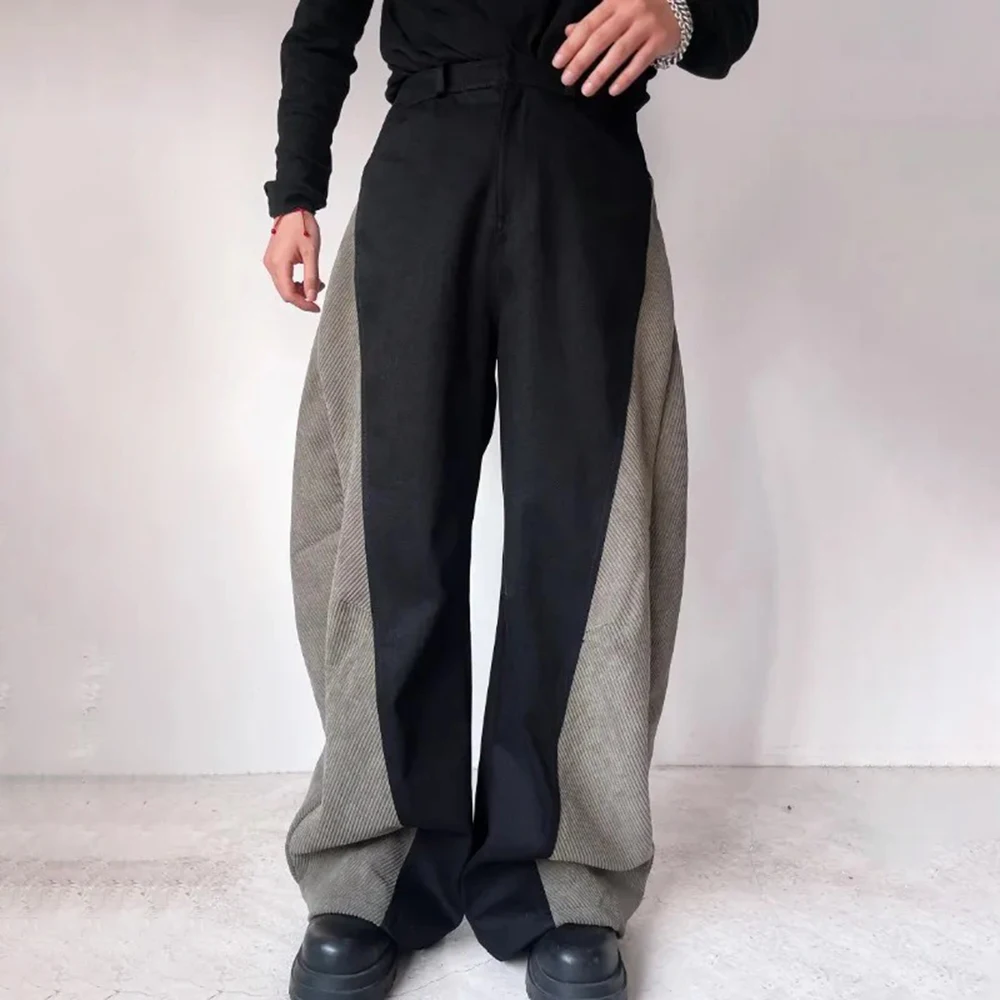 AIDASE  -  New In Mens Y2k Trousers 2025 Spring Autumn Street Handsome Two-Tone Casual Pants Fashion Elastic Waist Wide-Leg Mopping Pants