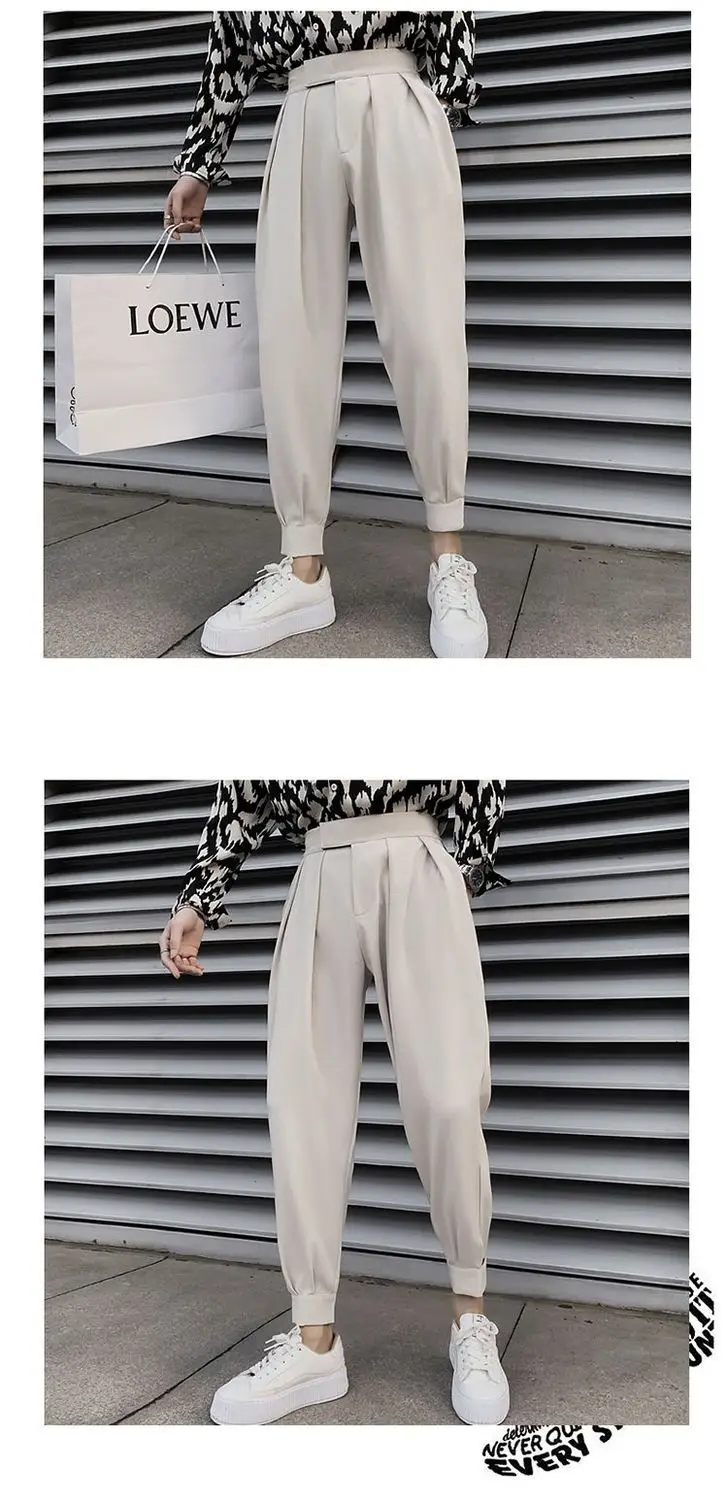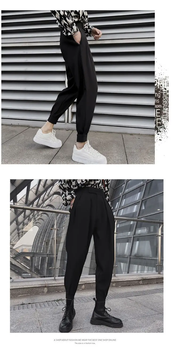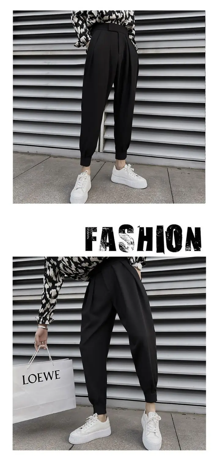 AIDASE - New Spring and Autumn Season Fashion High Waist Velcro Puppy and Handsome Casual Loose Versatile Solid Color Haren Pants