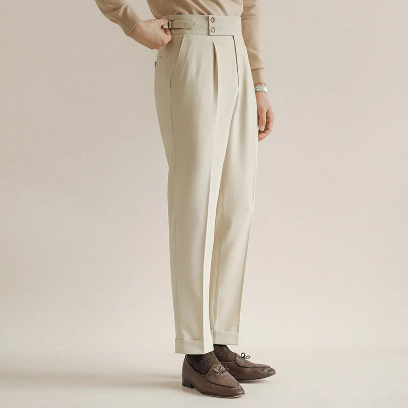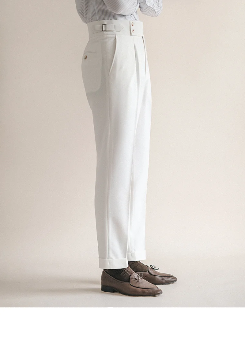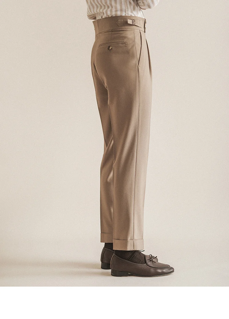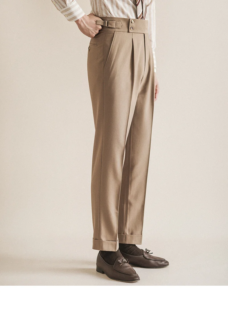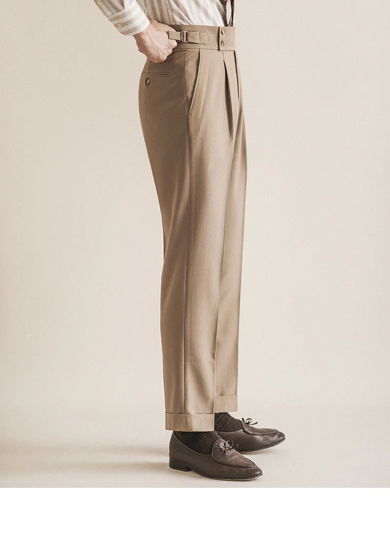 Aidase Paris Buckle Pant Casual Men Pant Fashion Naples High Waist Straight Pant Men Business Versatile Dress Pant Slim Social Trousers