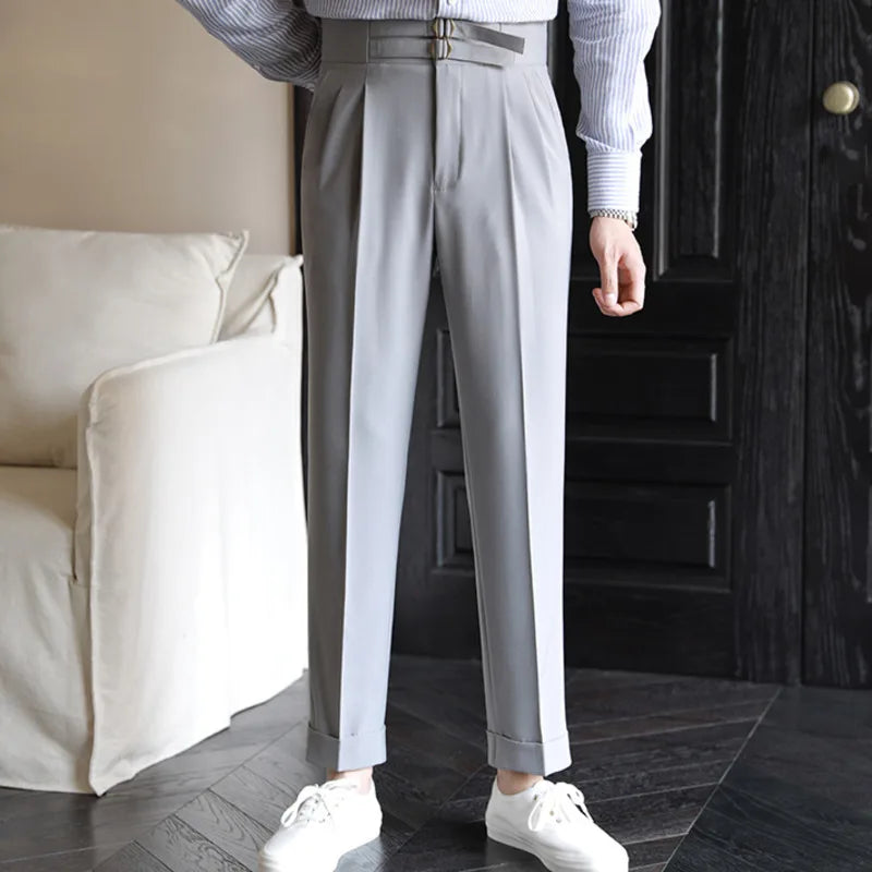 Quality Metal Button Trousers Pant For Man Office Trouser Men Business Casual Pant British Social Club Outfits Pantalones Hombre