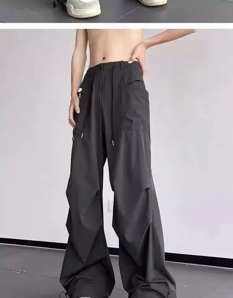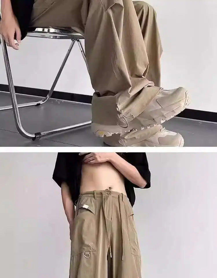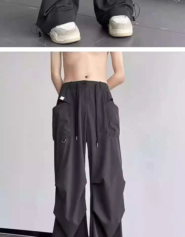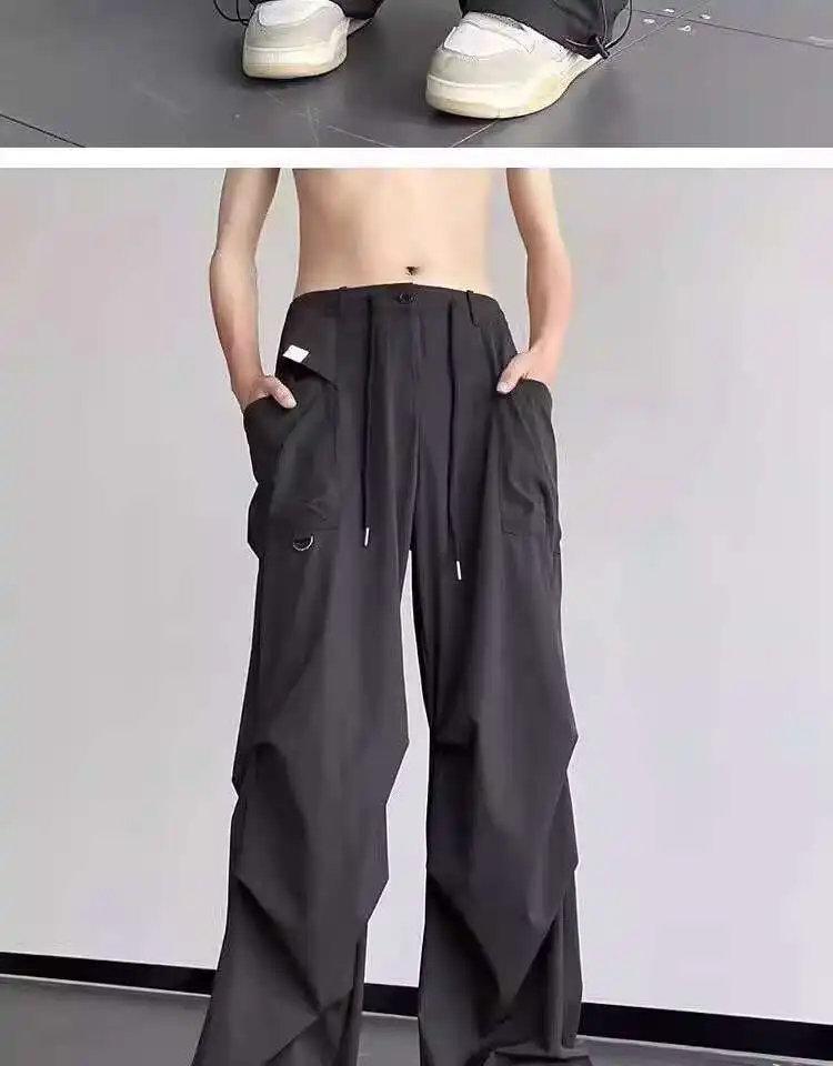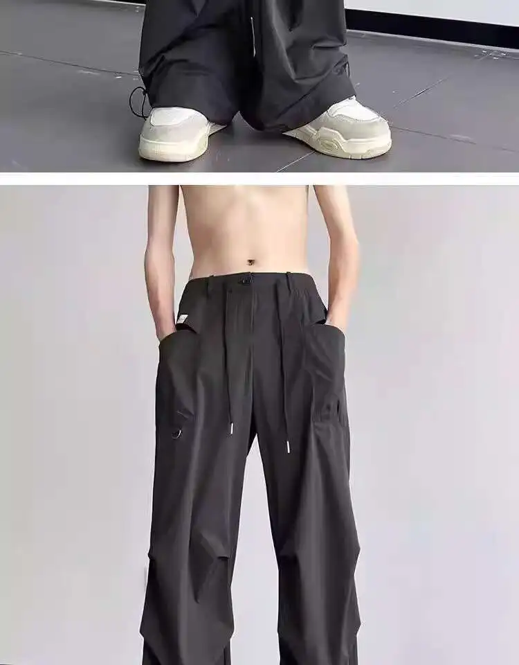 AIDASE  -  Quick Drying Male Cargo Pants Summer Loose Straight Wide Leg Trousers American Style Trend Cool Casual Clothing