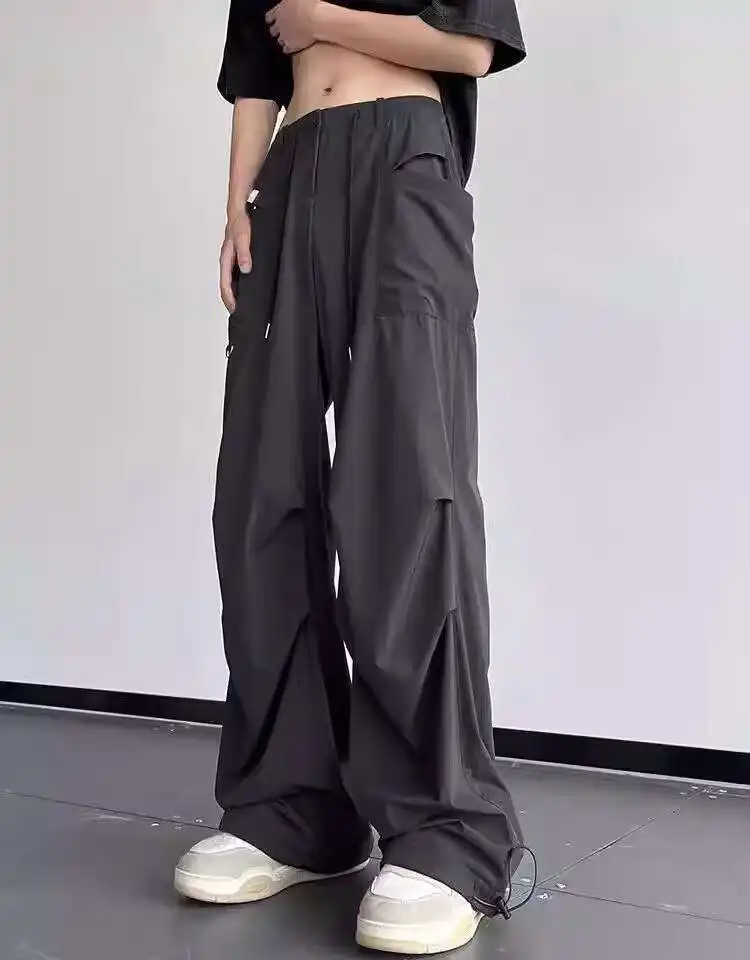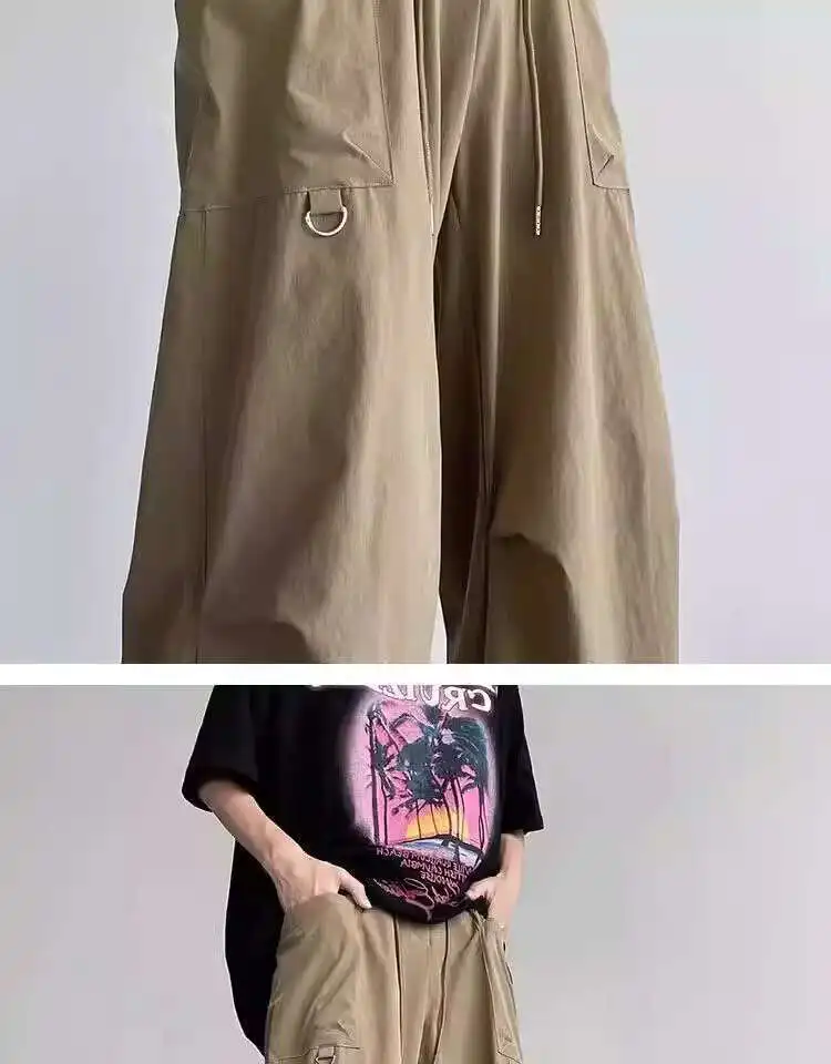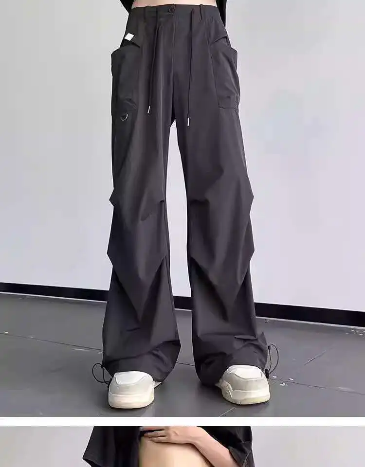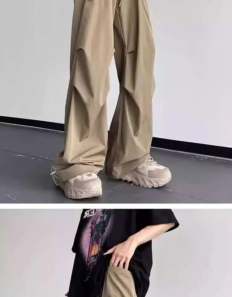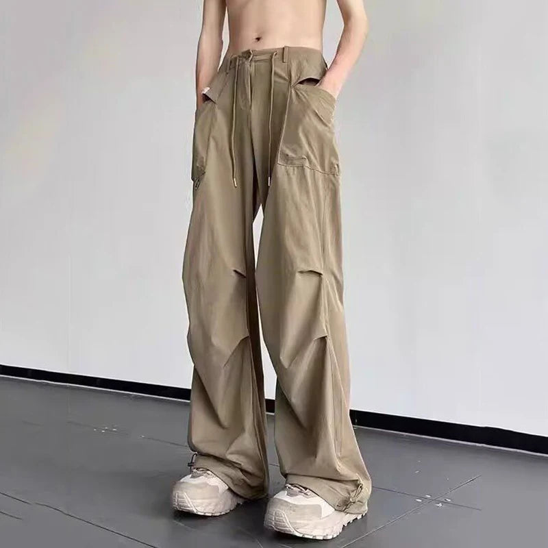 AIDASE  -  Quick Drying Male Cargo Pants Summer Loose Straight Wide Leg Trousers American Style Trend Cool Casual Clothing