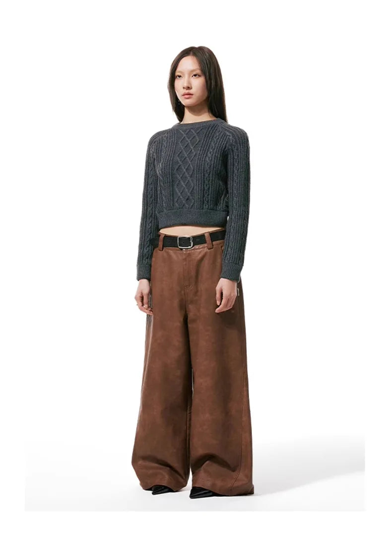 Aidase Spring Autumn Long Loose Casual Brown Pu Leather Pants Men Wide Leg LUxury Designer Unisex Trousers Fashions