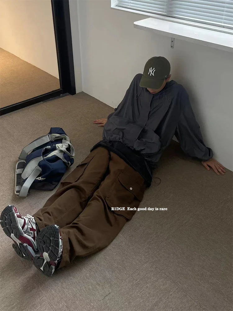 Aidase Summer Fashion Brand Large Pocket Straight Loose Wide Leg Casual jogger Pants