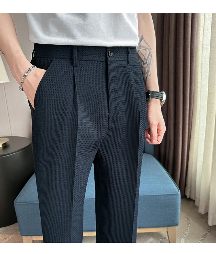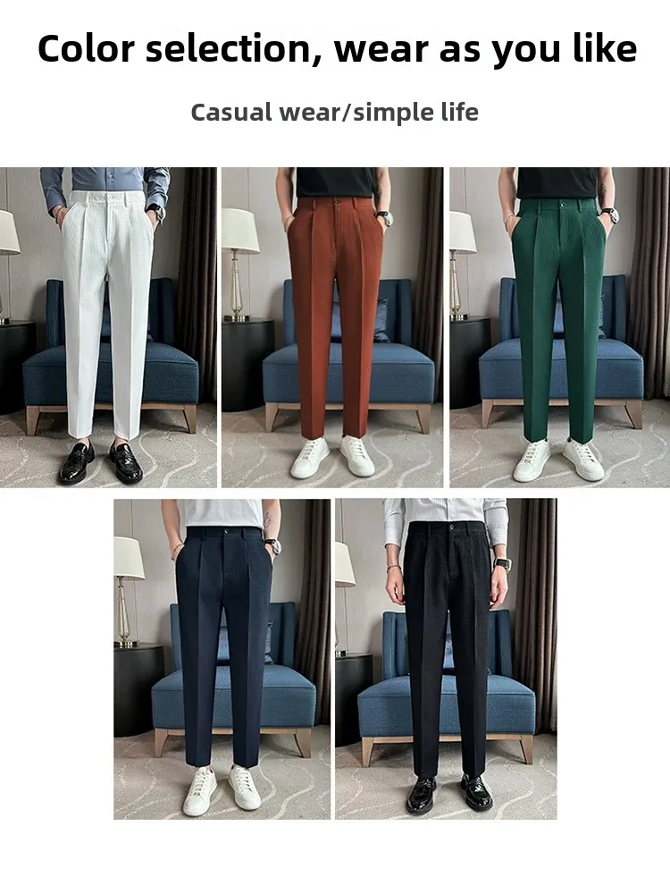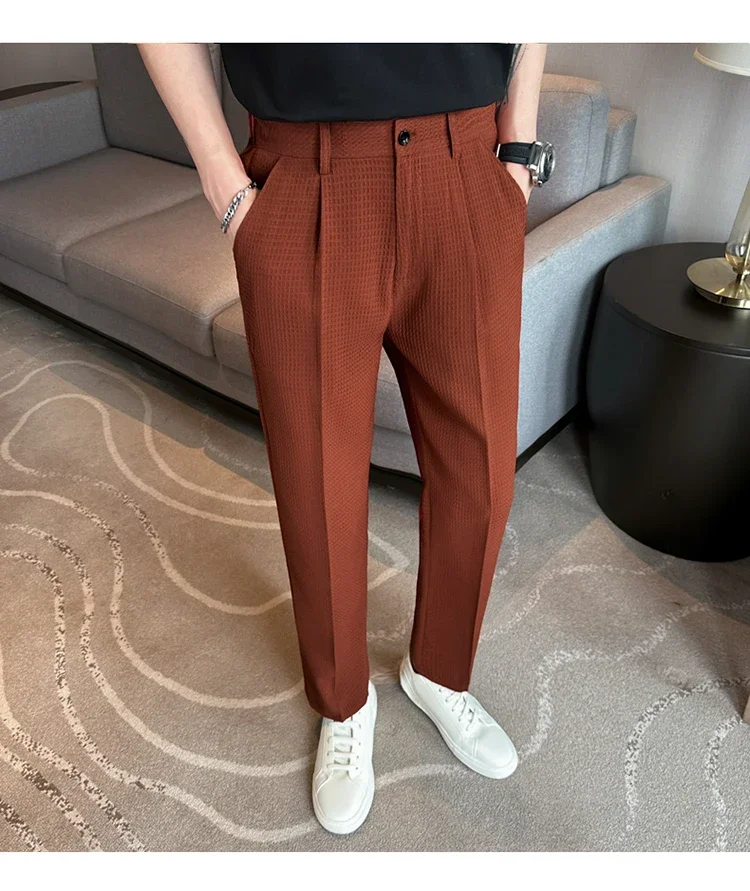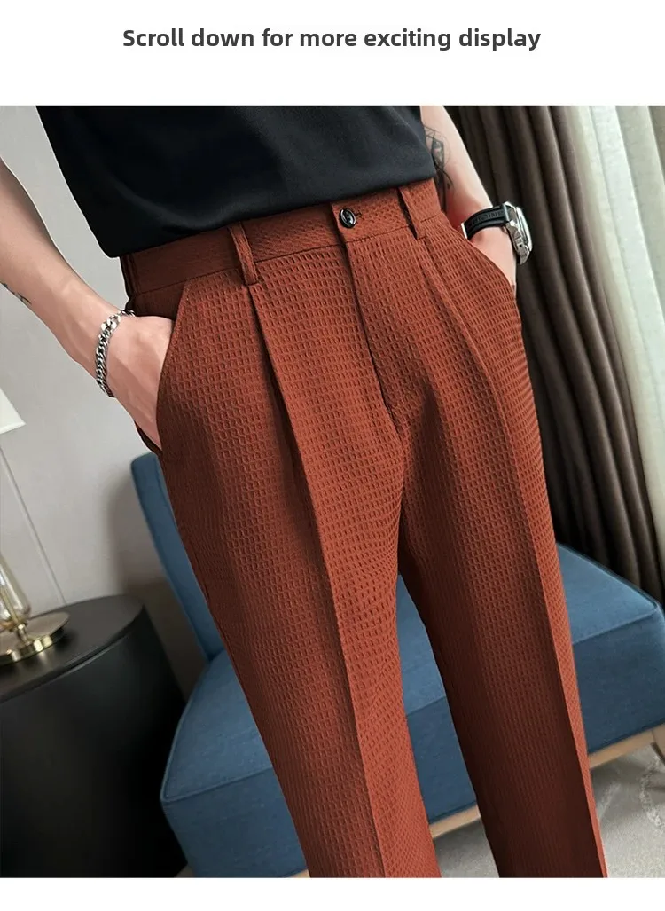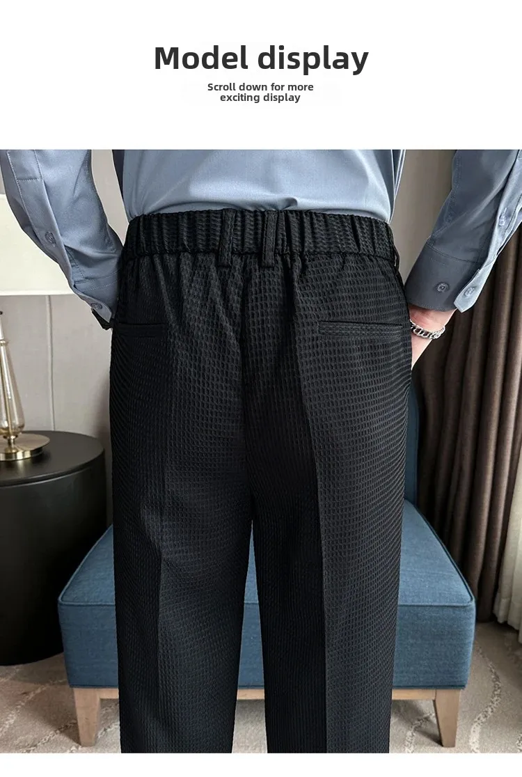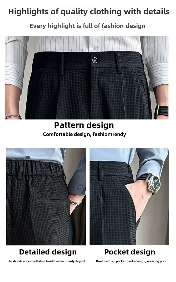 AIDASE - Trendy Casual Men's Pants Versatile Fashionable Ins New Model Youth Summer Artistic Trousers Checked Waist Breathable