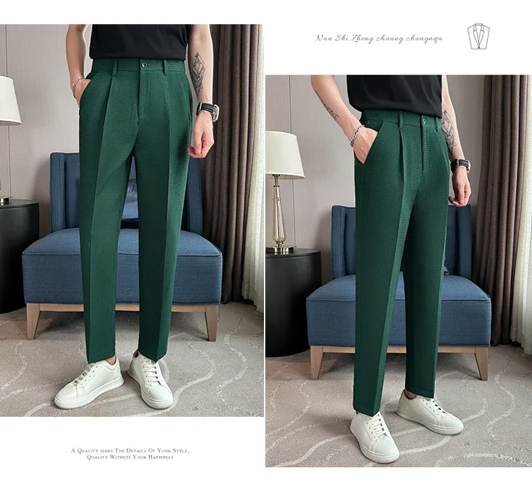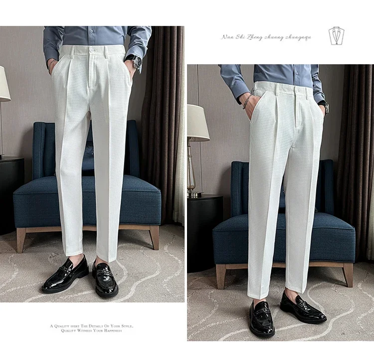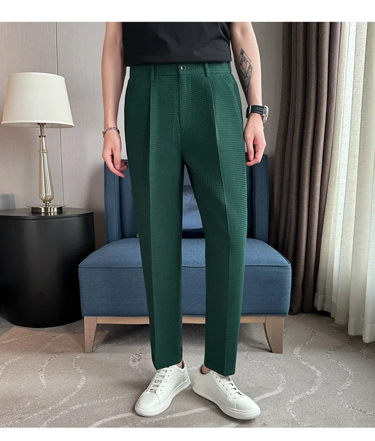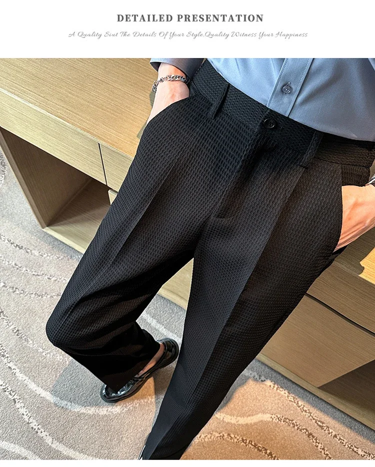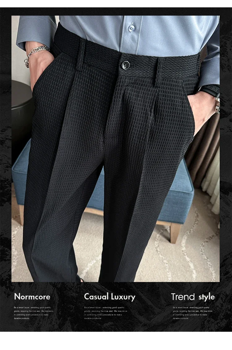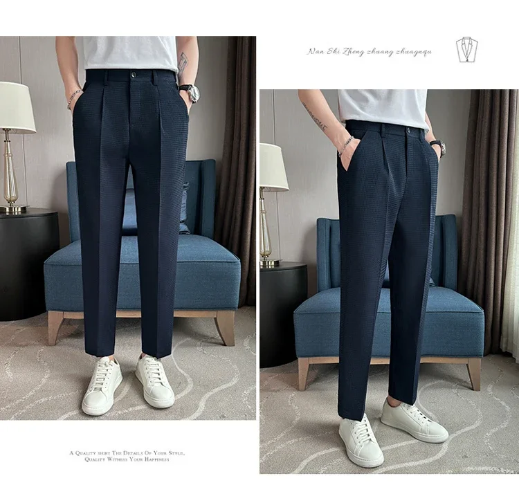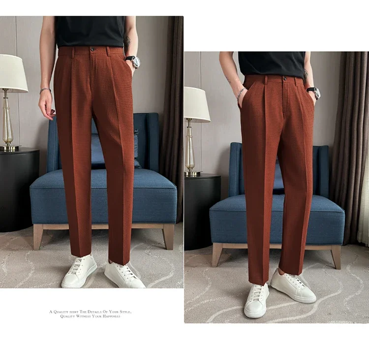 AIDASE - Trendy Casual Men's Pants Versatile Fashionable Ins New Model Youth Summer Artistic Trousers Checked Waist Breathable