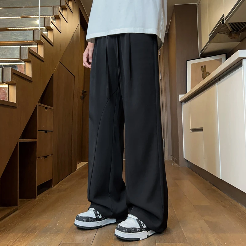 AIDASE  -  Trendy Men's Casual Pants Summer New American Style Thin Straight Leg Drawstring Elastic Waist Sports Trousers