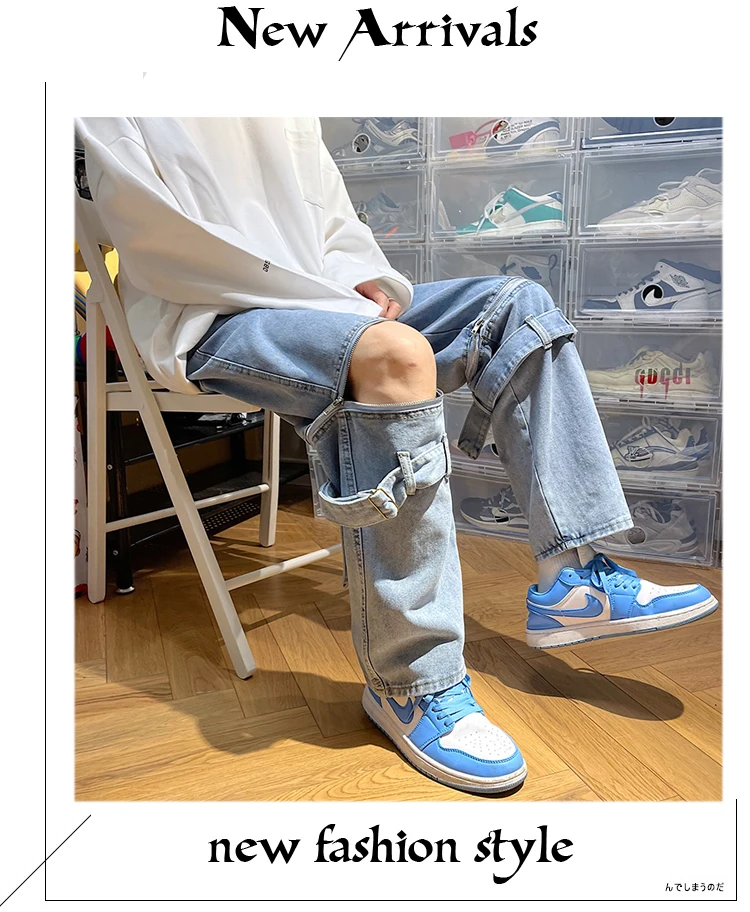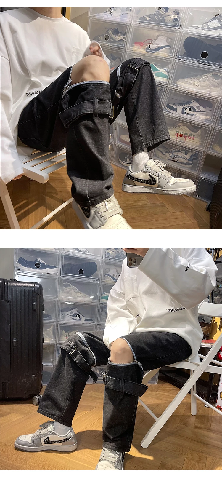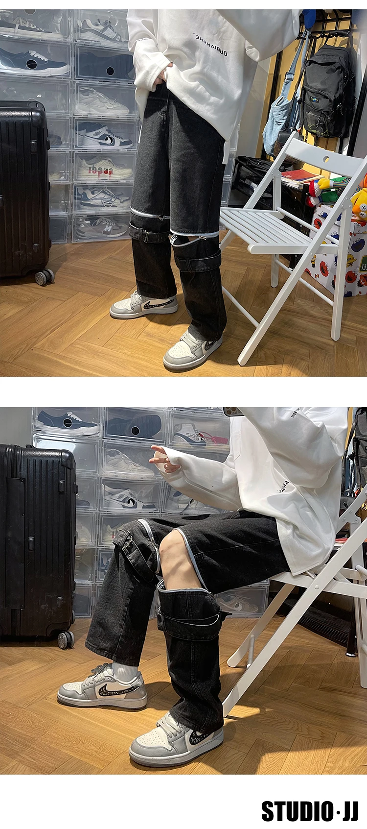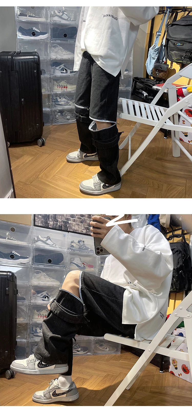 Fashion Men's Jeans Pants Hip Hop Trend Streetwear Jogging Pants Men Casual Elastic Waist Men Trousers