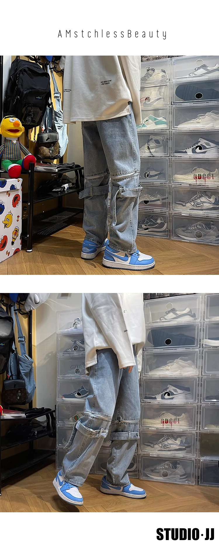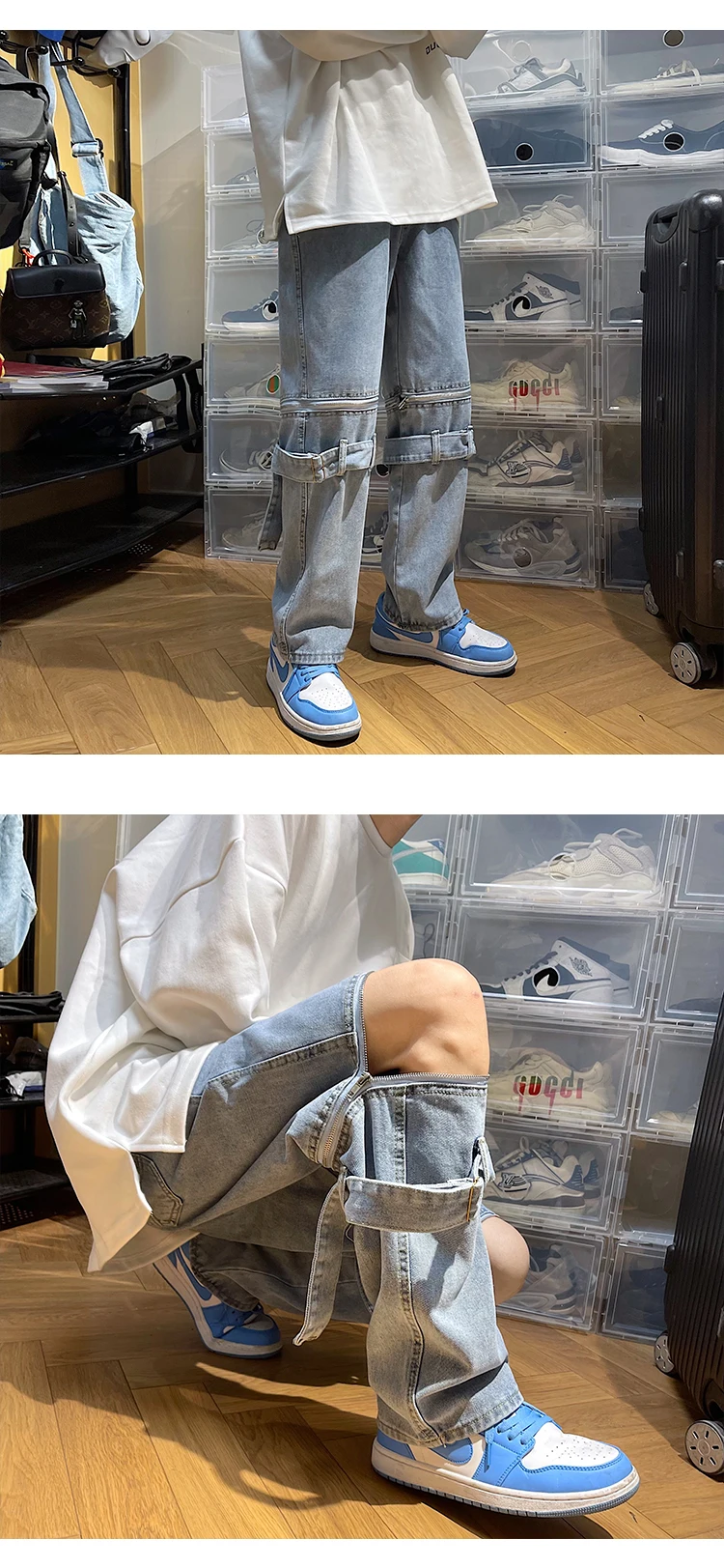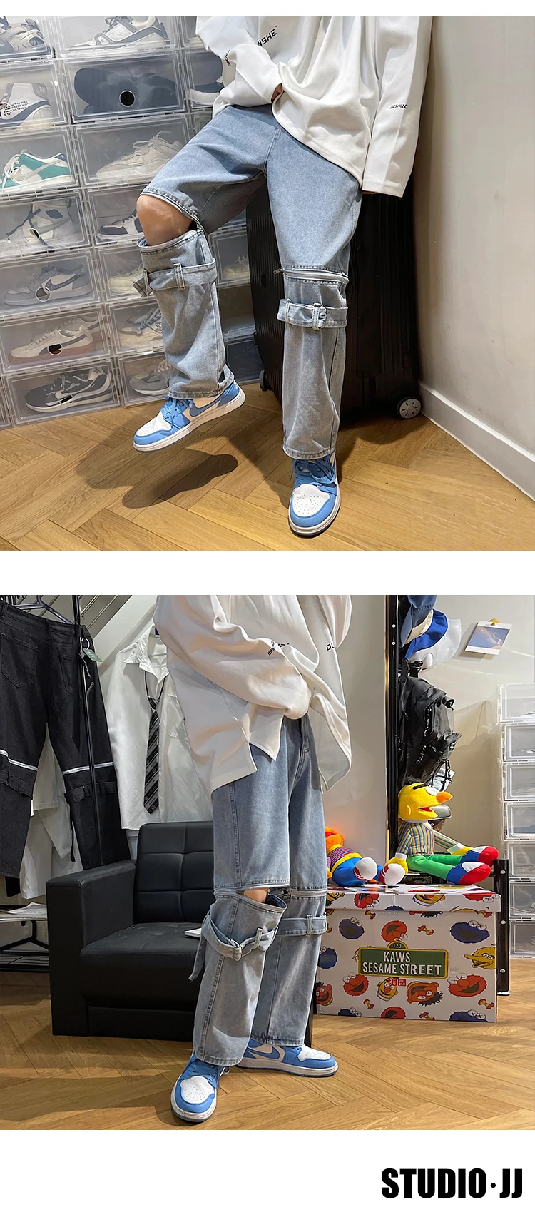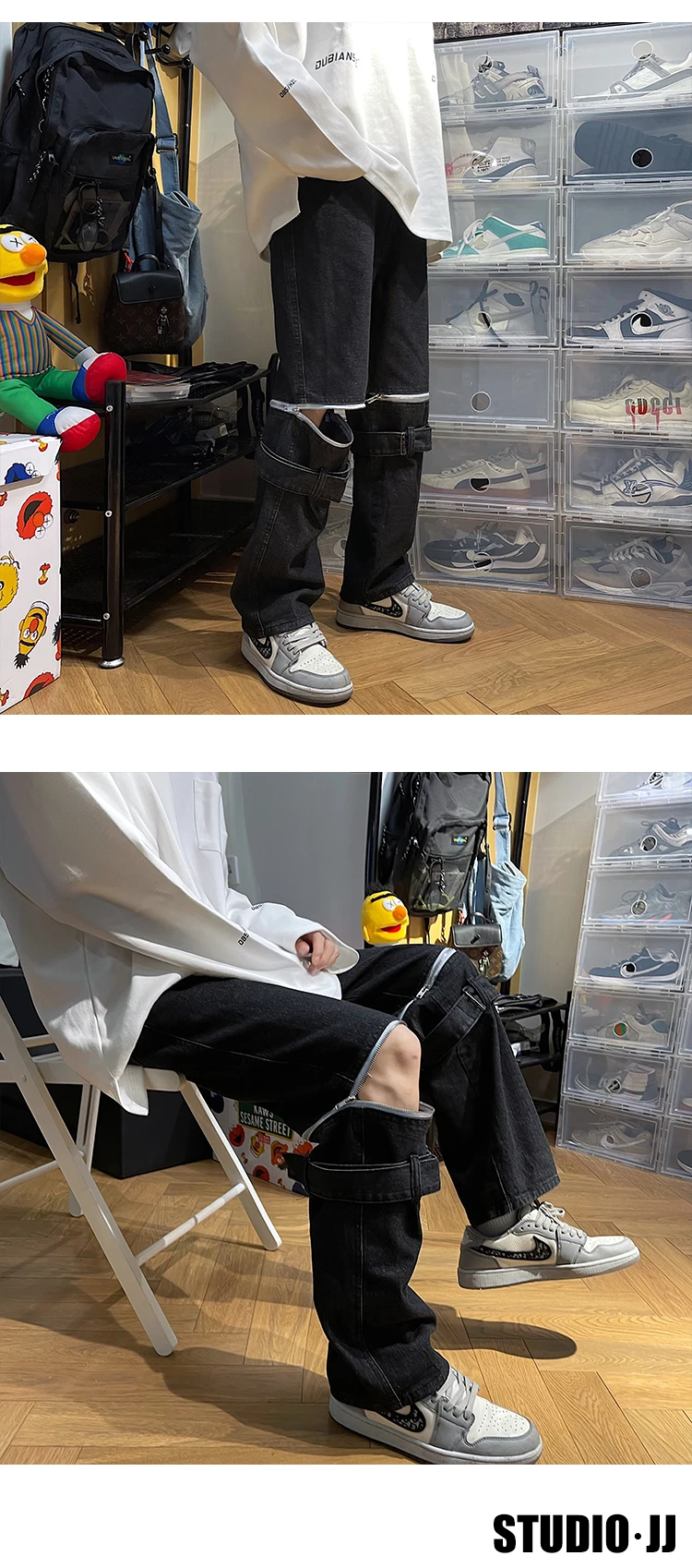Fashion Men's Jeans Pants Hip Hop Trend Streetwear Jogging Pants Men Casual Elastic Waist Men Trousers