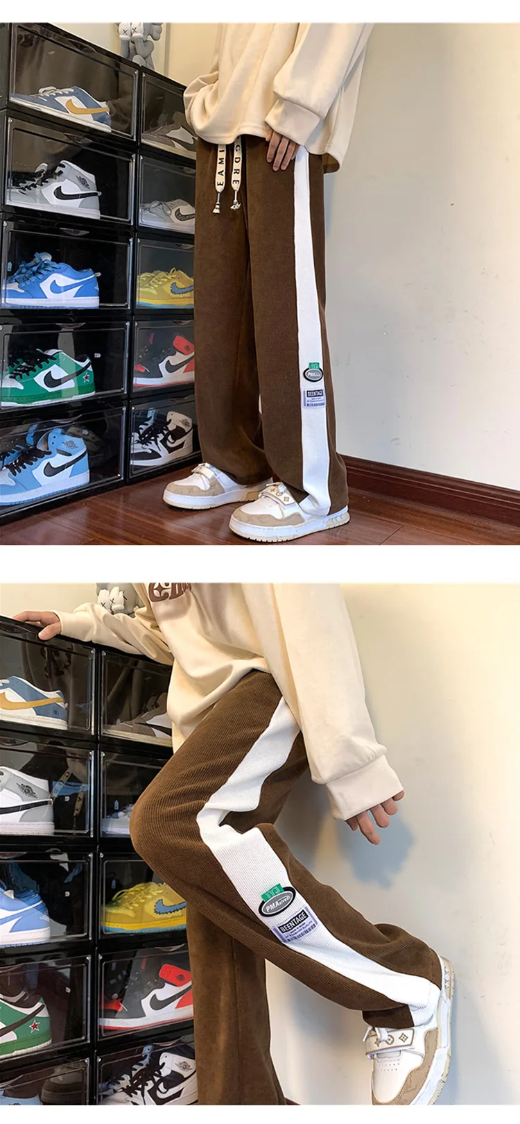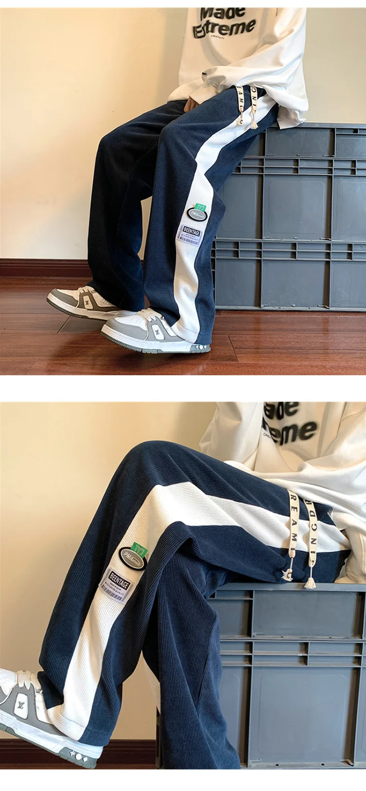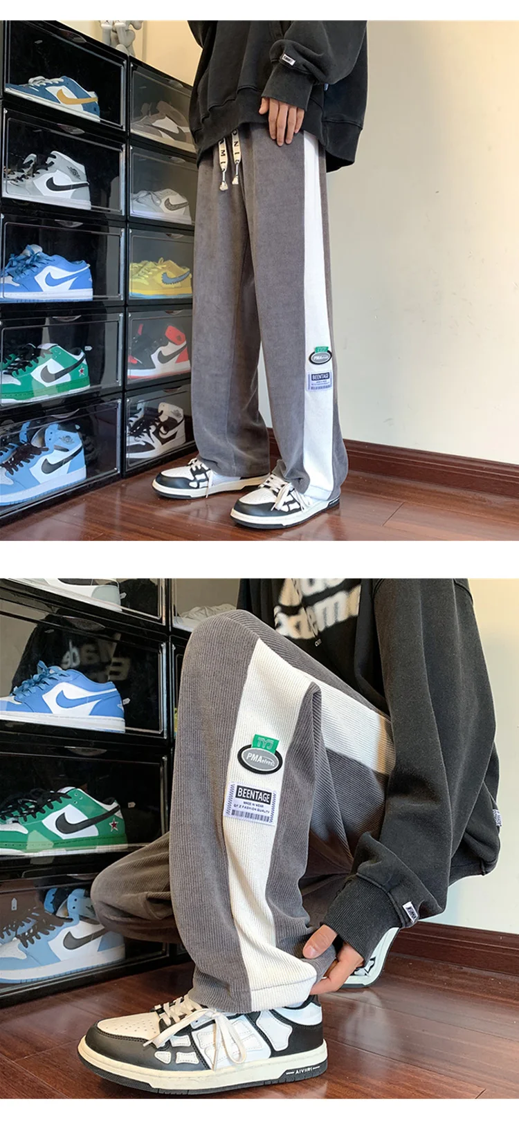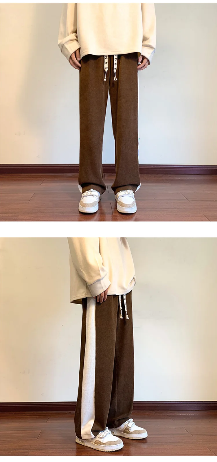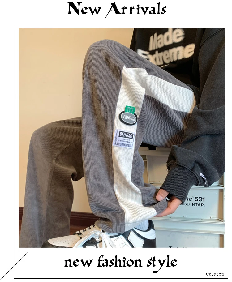 Men's Corduroy Pants Fashion Straight Leg Loose Trousers Casual Sweatpants Pantalons