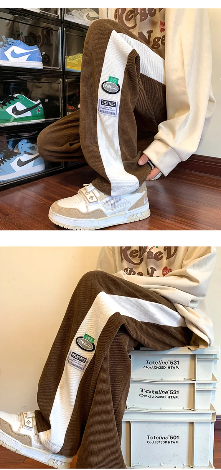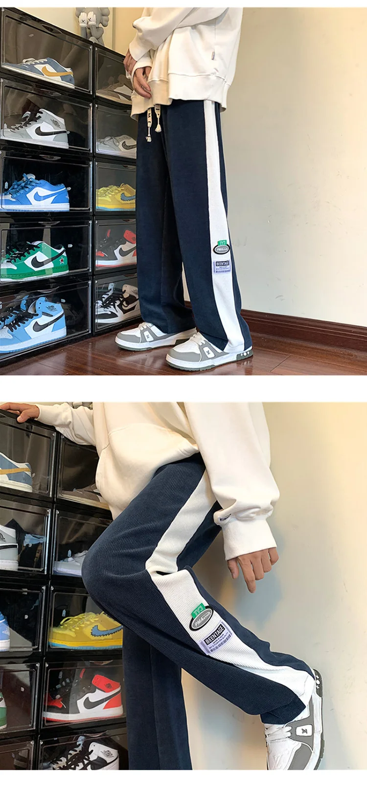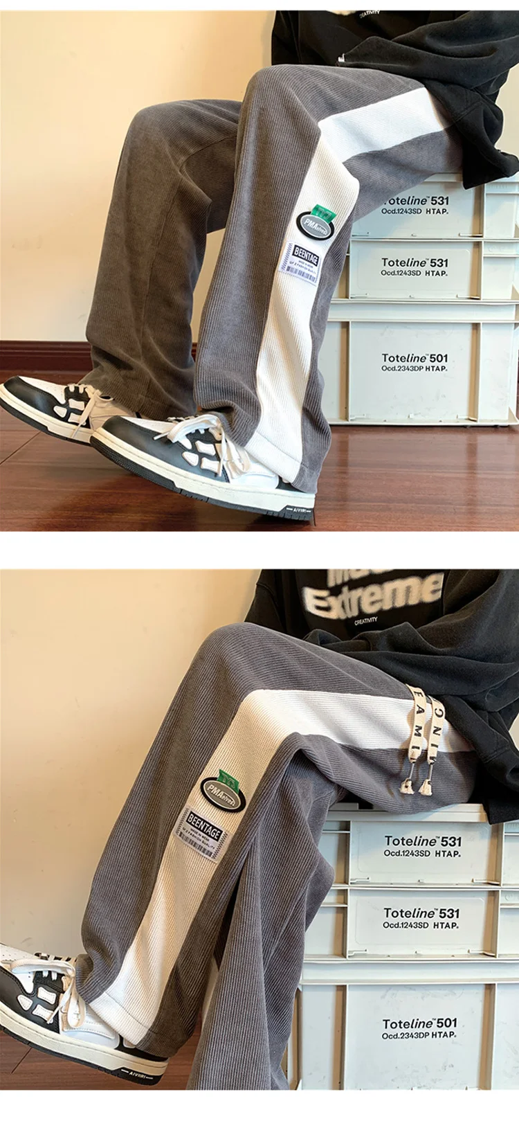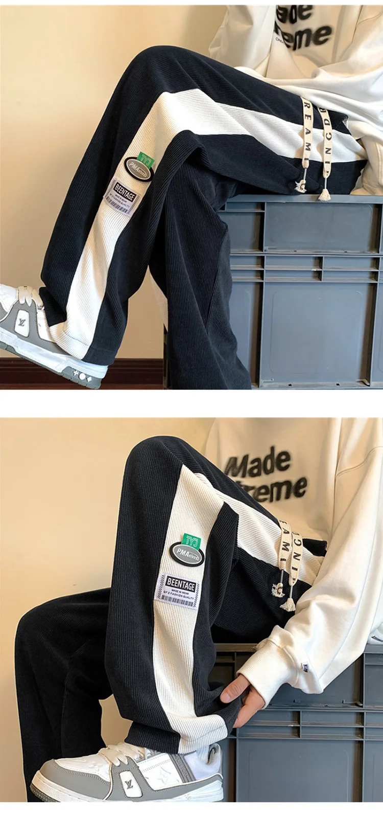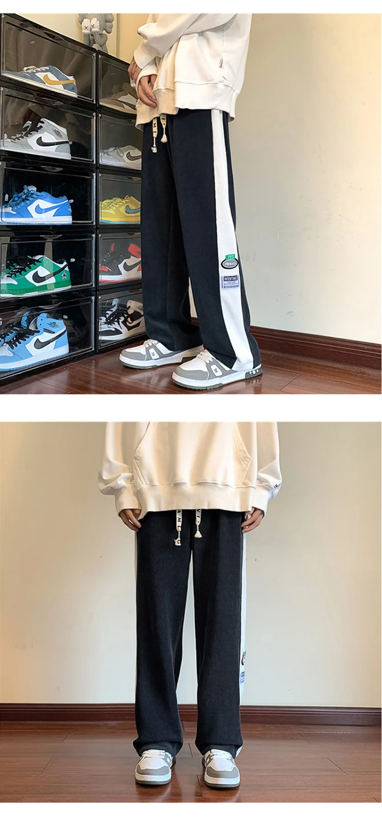 Men's Corduroy Pants Fashion Straight Leg Loose Trousers Casual Sweatpants Pantalons