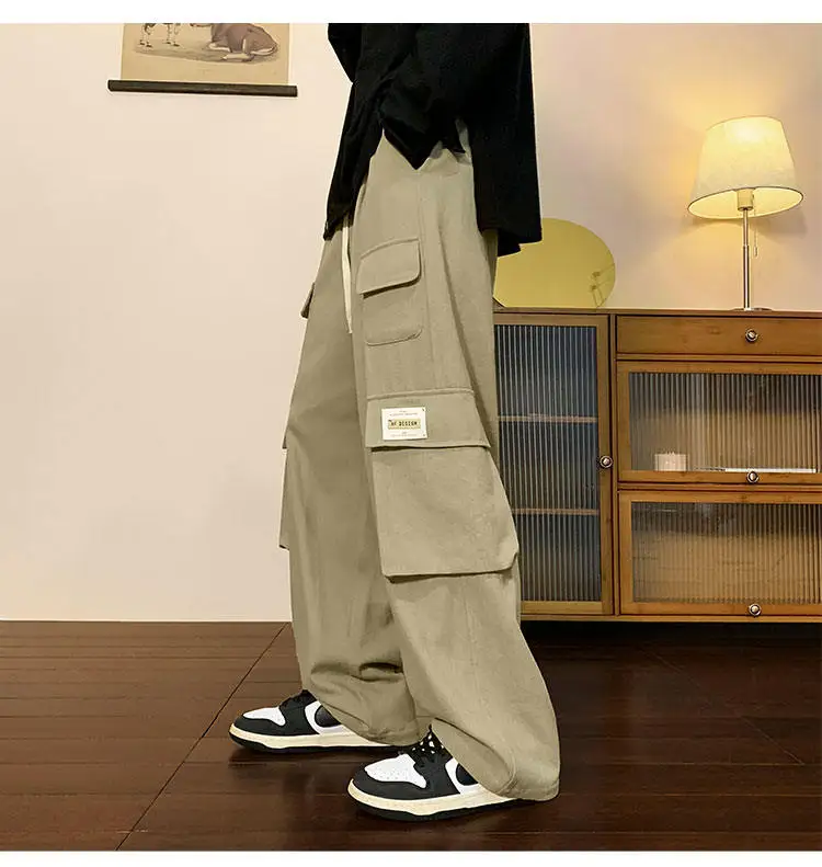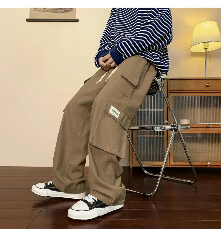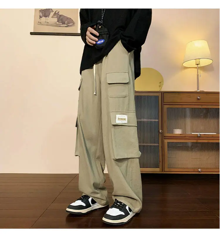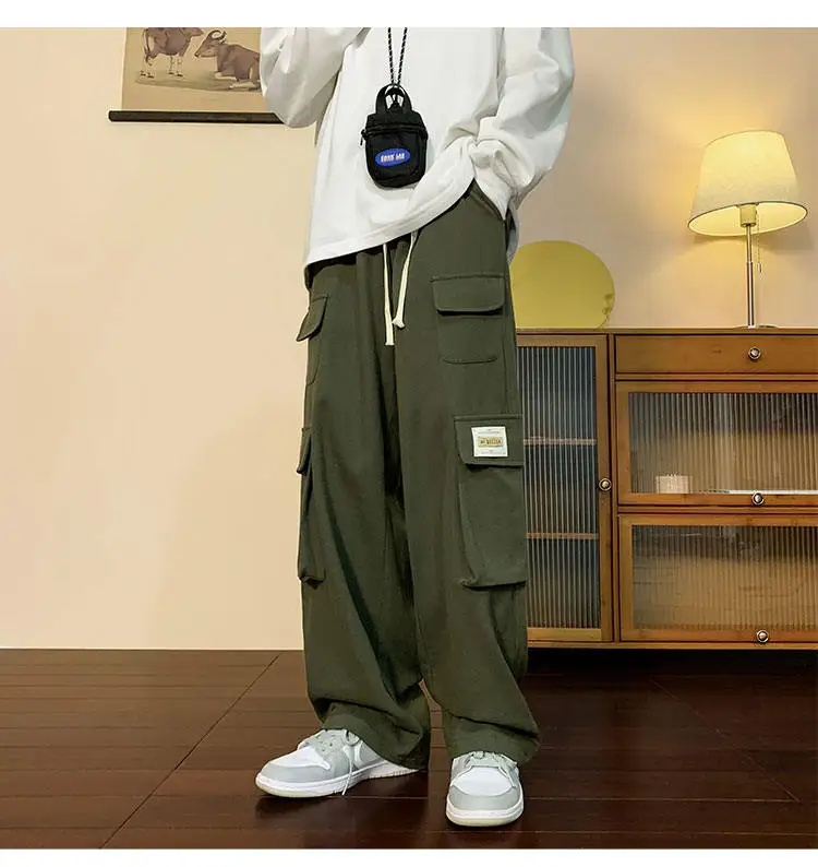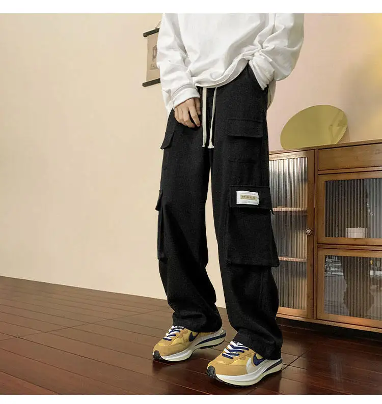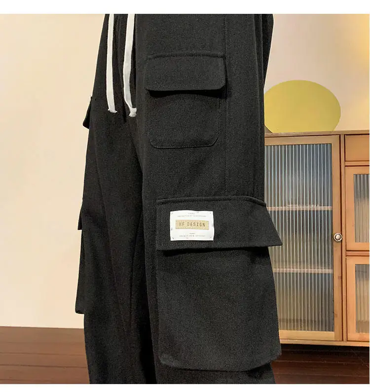 Multi Pockets Cargo Pants American Style Street Plus Size Man Loose Casual Streetwear Wide Leg Joggers Hip Hop Trousers