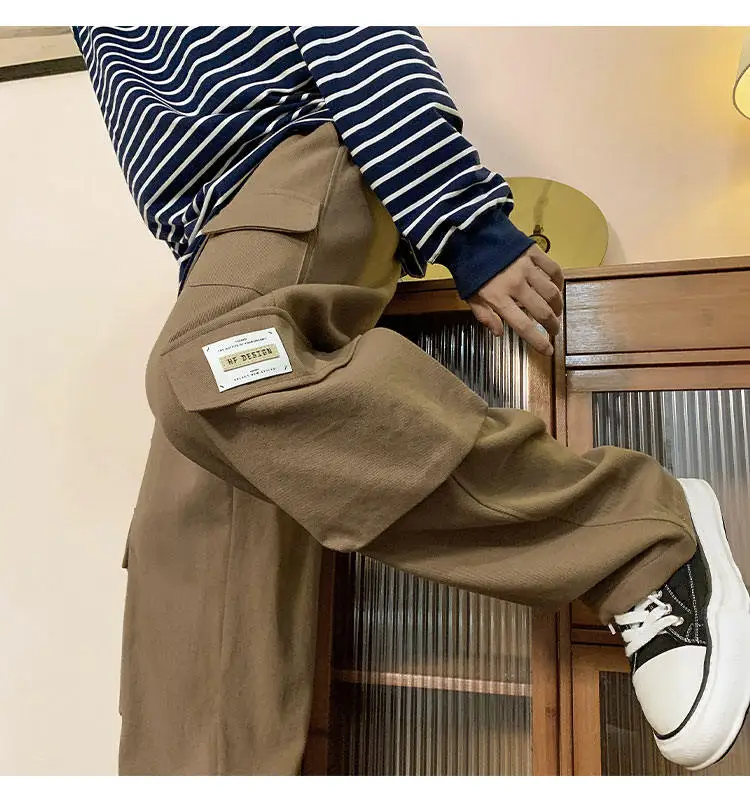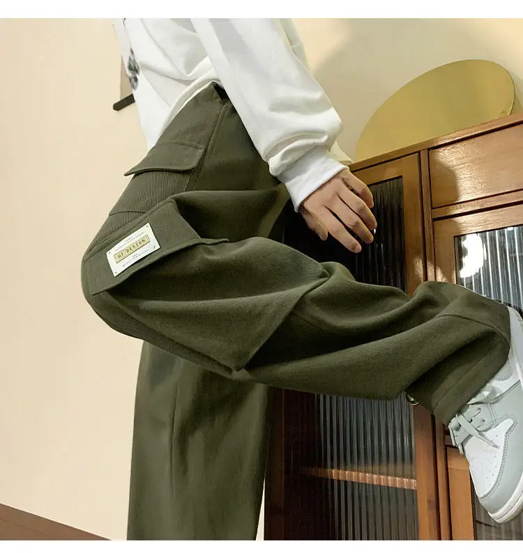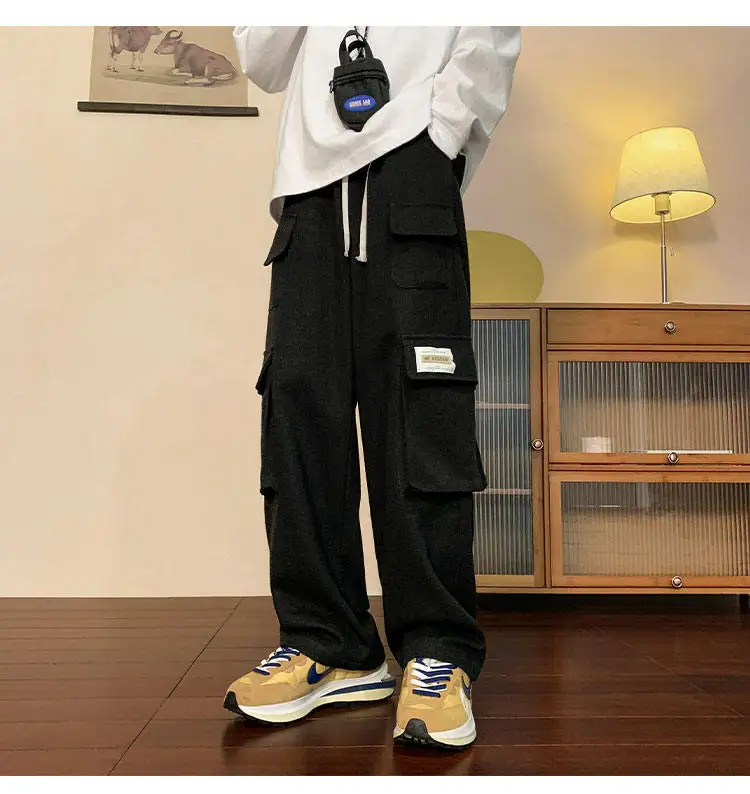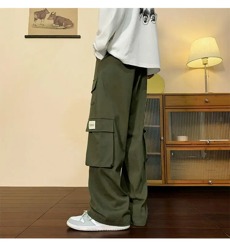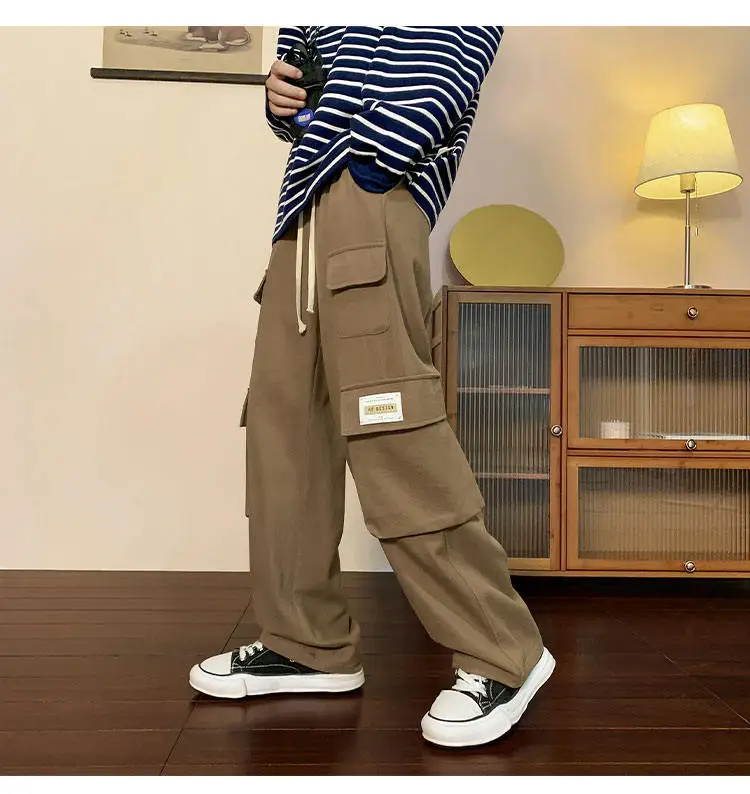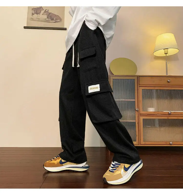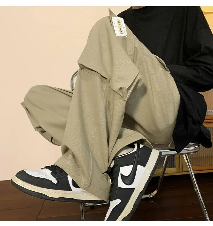 Multi Pockets Cargo Pants American Style Street Plus Size Man Loose Casual Streetwear Wide Leg Joggers Hip Hop Trousers