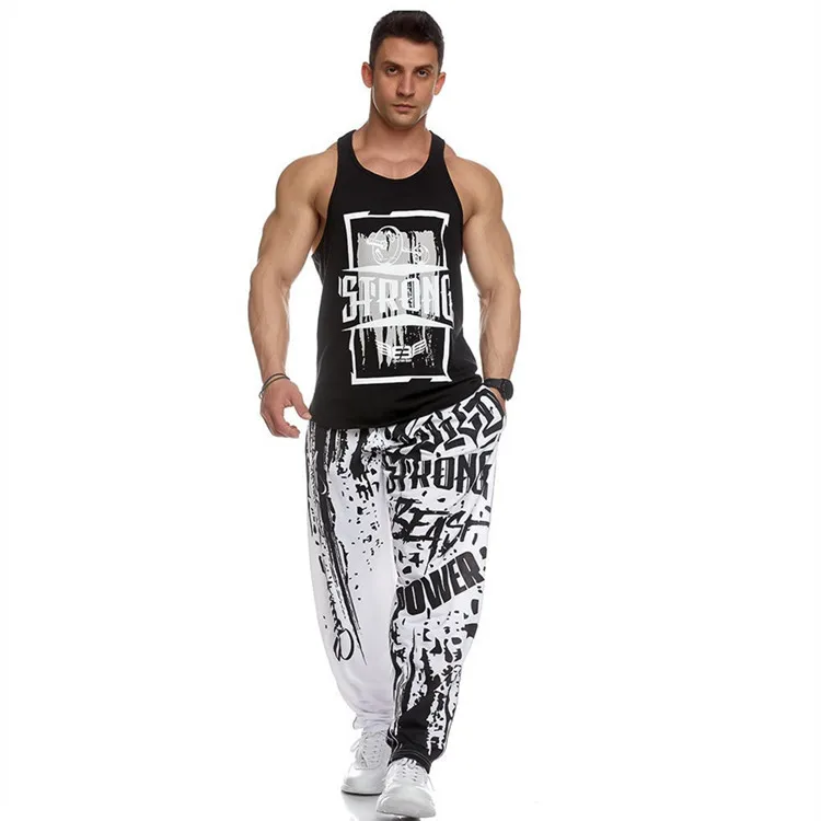 Muscle Men Sports Mesh Pants Male Thin Casual Running Training Loose Oversized Trousers Hip-Hop Printed Sportpants