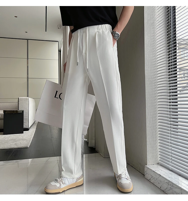 Spring New Black Khaki White Pants Men Fashion Casual Straight Pants Men Korean Loose Suit Pants Mens Formal Trousers S-2XL