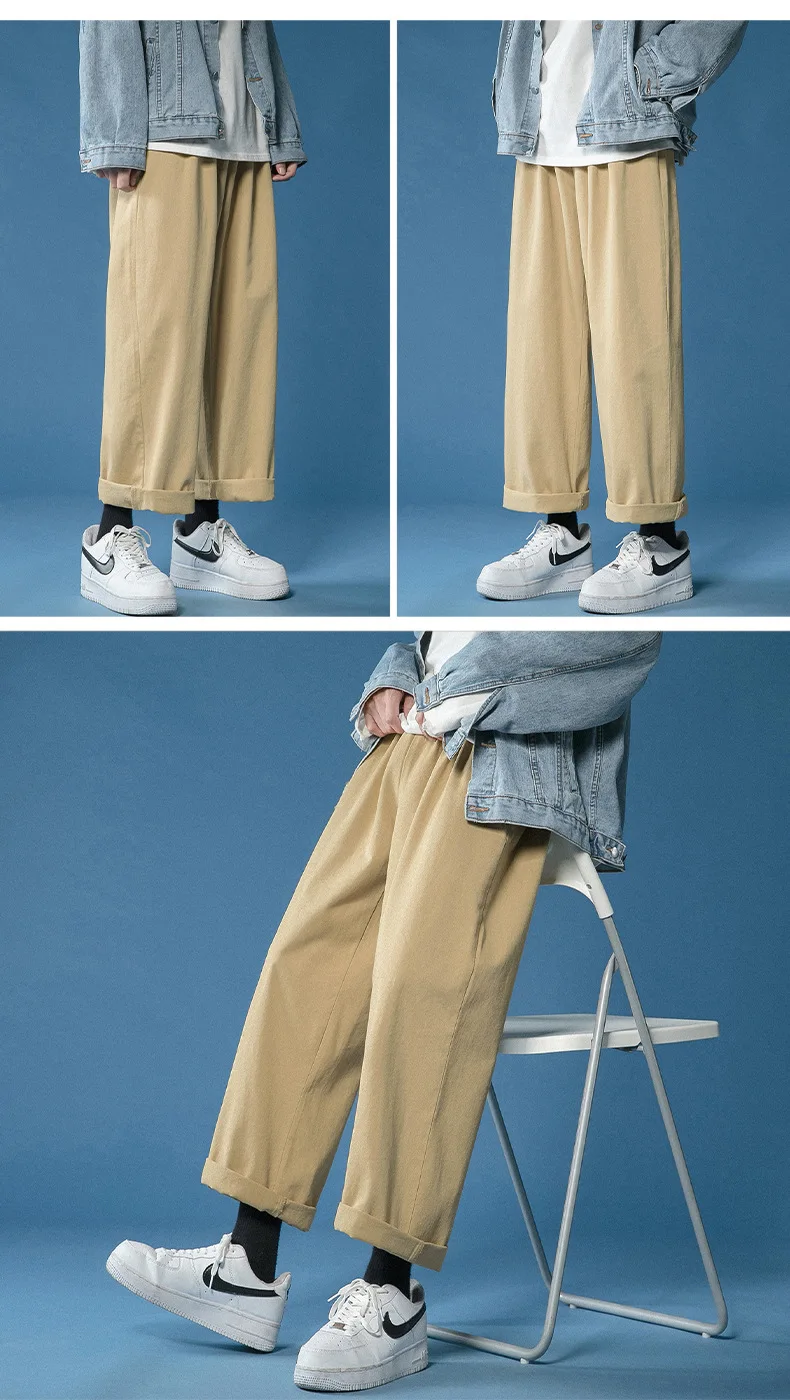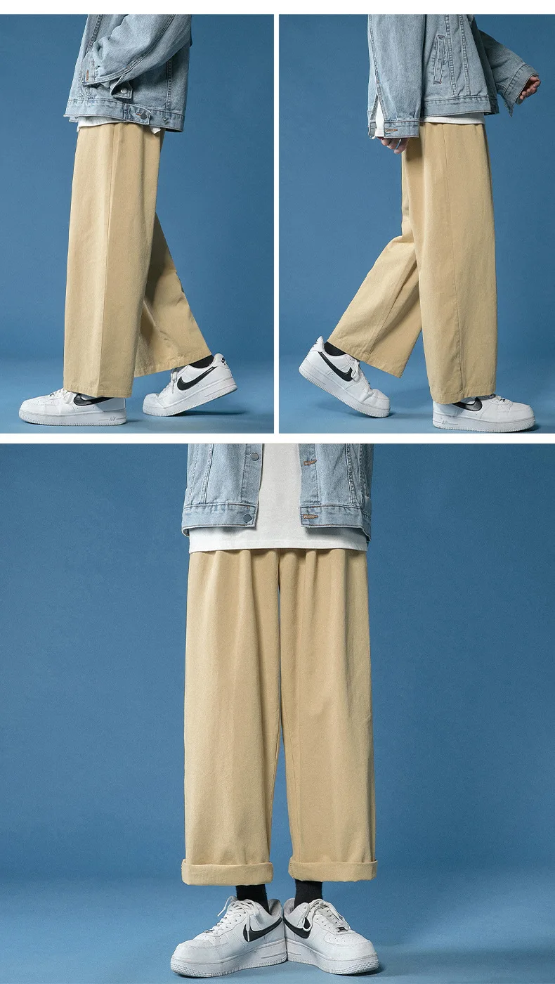 Wide leg casual pants loose men and women Japanese retro autumn wild straight overalls trousers