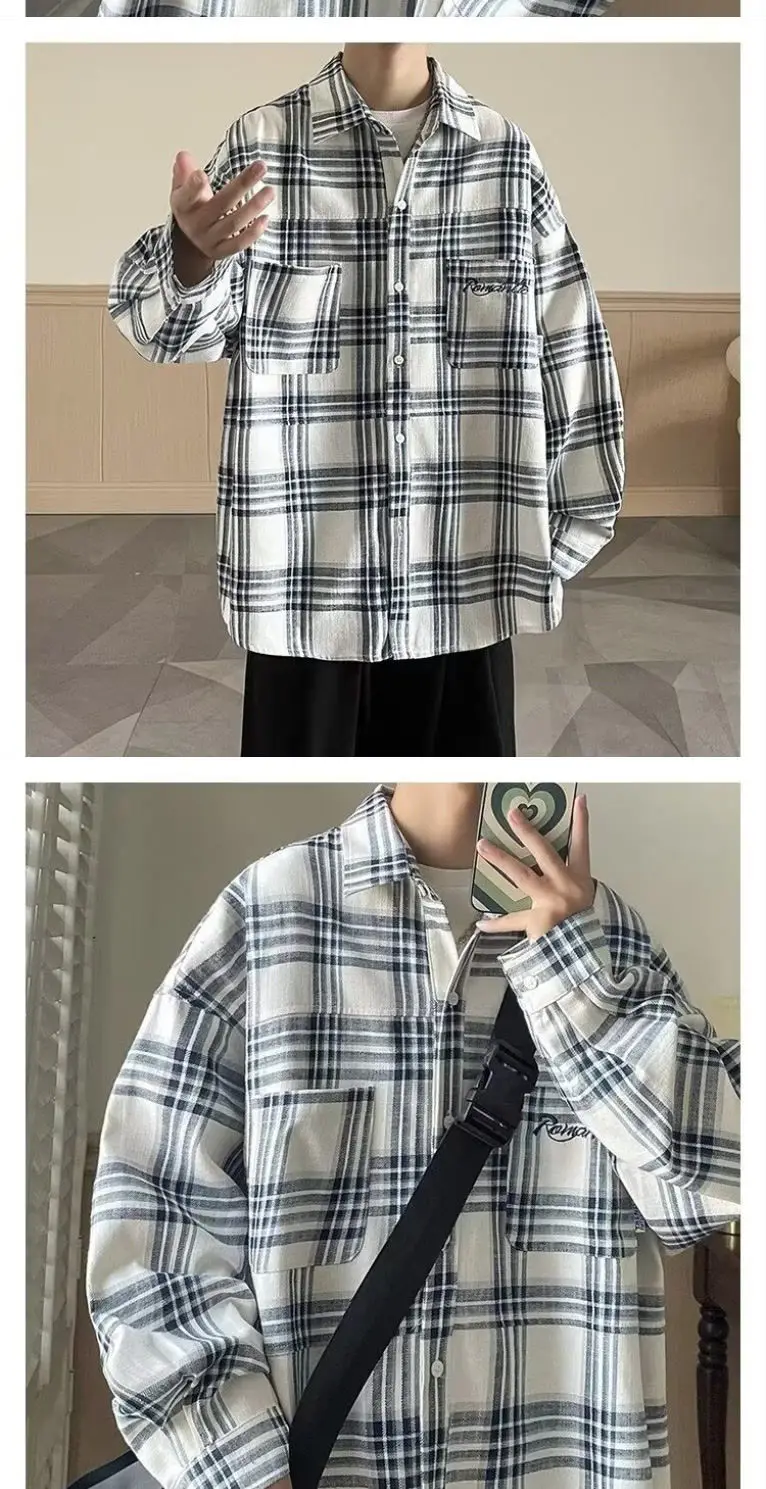 Aidase Boys' New Long-sleeved Plaid Shirt Jacket