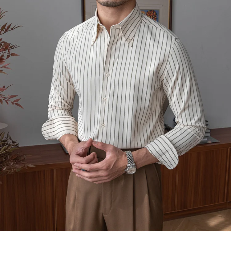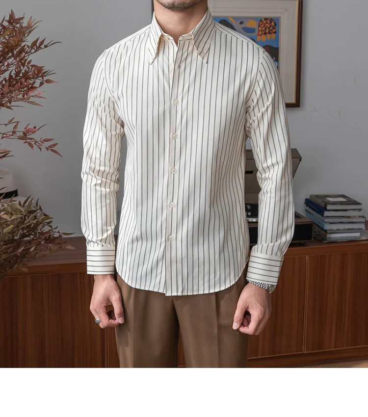 Aidase British Fashion Color Contrast Stripes Shirt Trend Men Shirt Business Shirt Men Long Sleeve Shirt Office Tuxedo Shirt Social