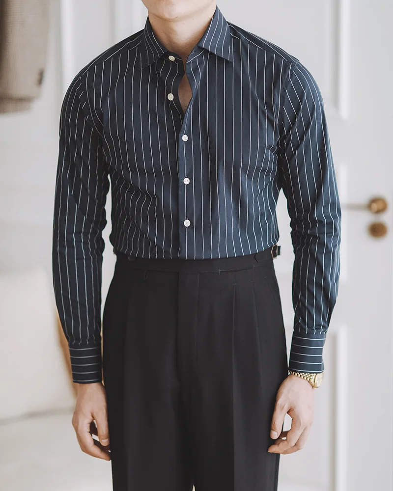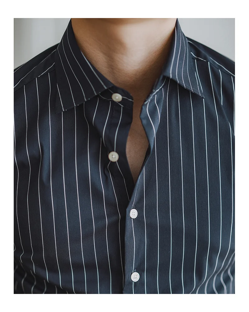 Casual Blue Stripe Shirt Men's Business Versatile Non Iron Naples Italian Splayed Collar Long Sleeved Gentleman Fashion Shirt