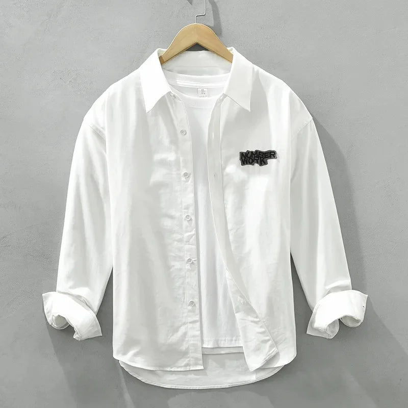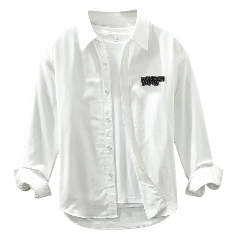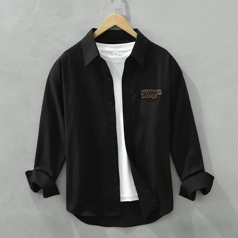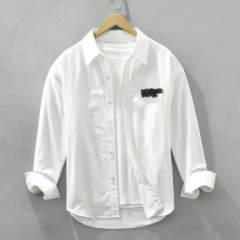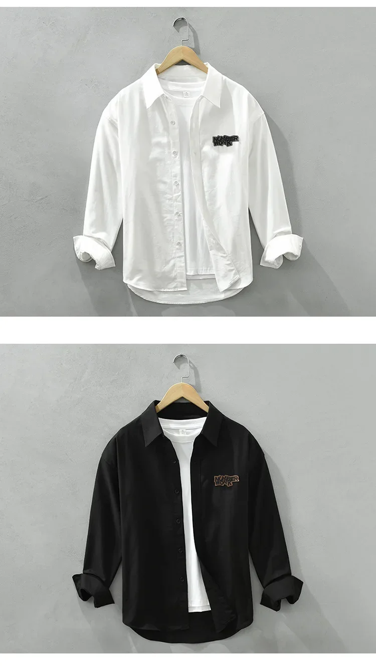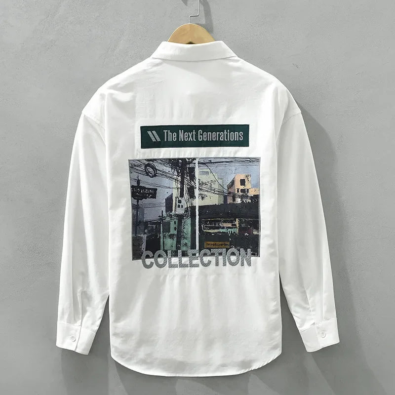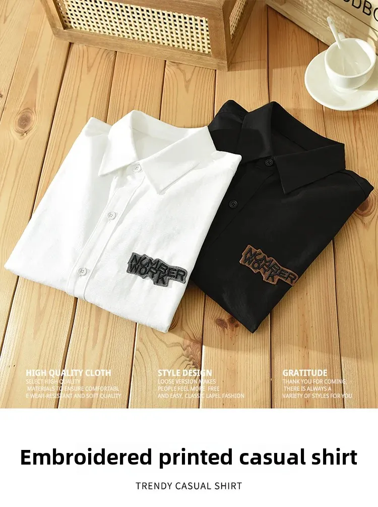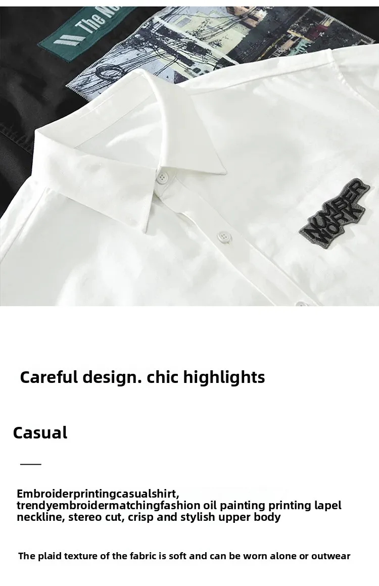 AIDASE - Casual Long Sleeve Shirt M2190 Fashionable Embroidery Poster Print Artistic Versatile Trendy Button up Cotton Slim Fit Women's S