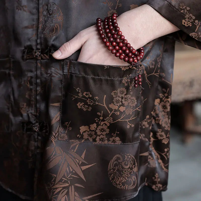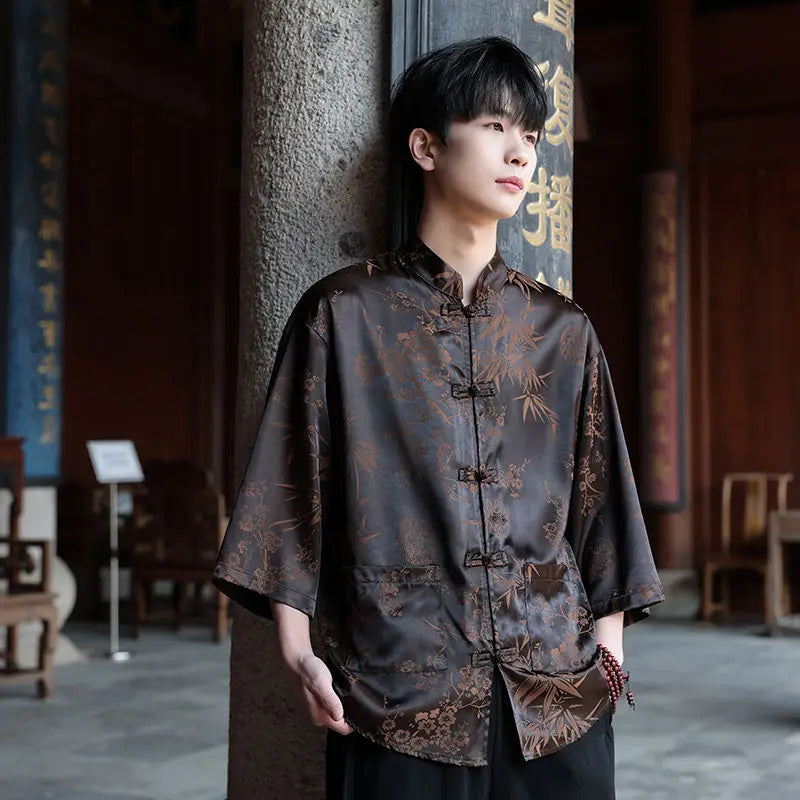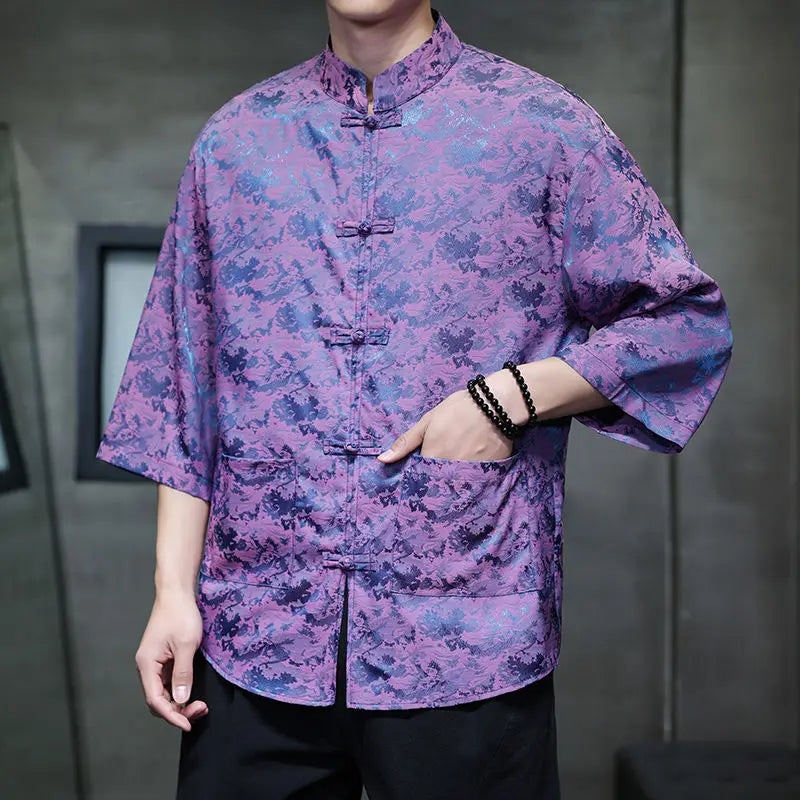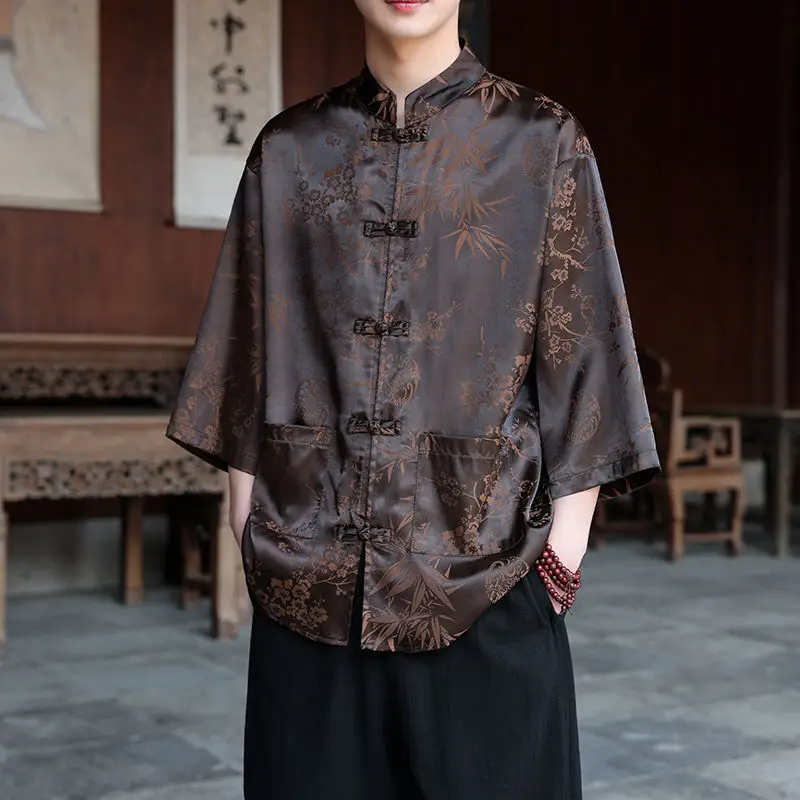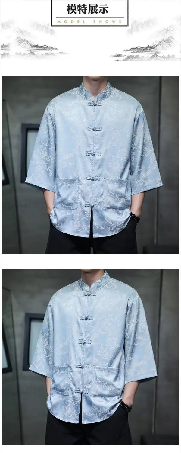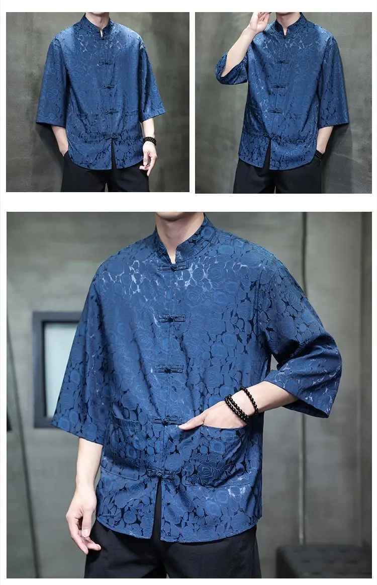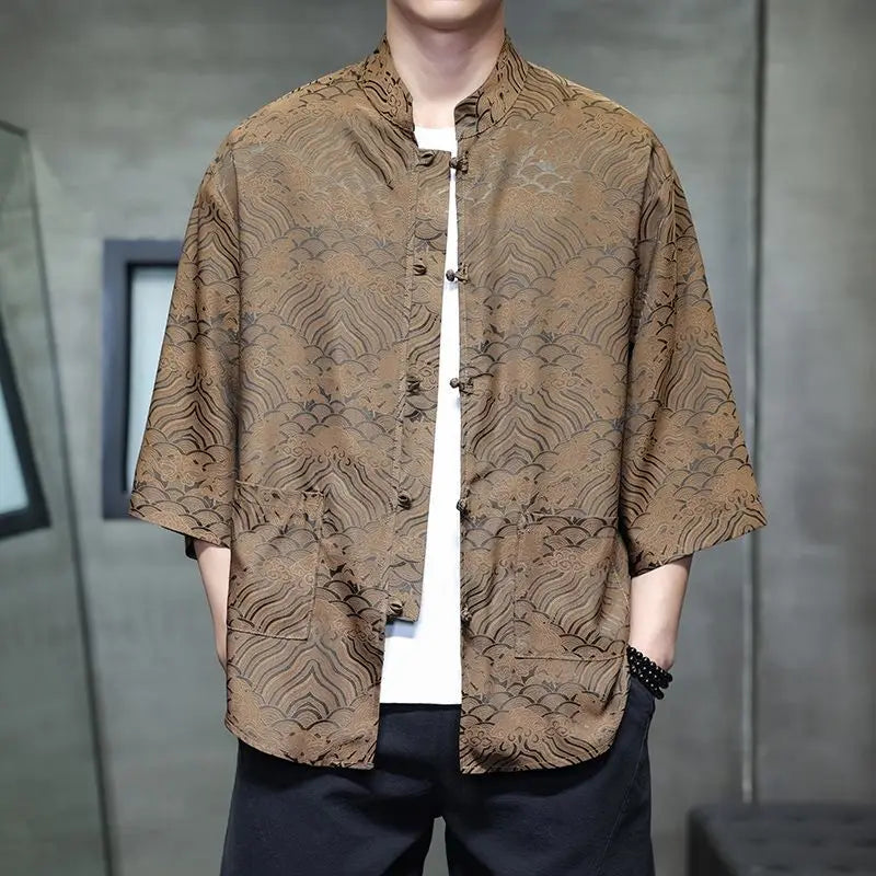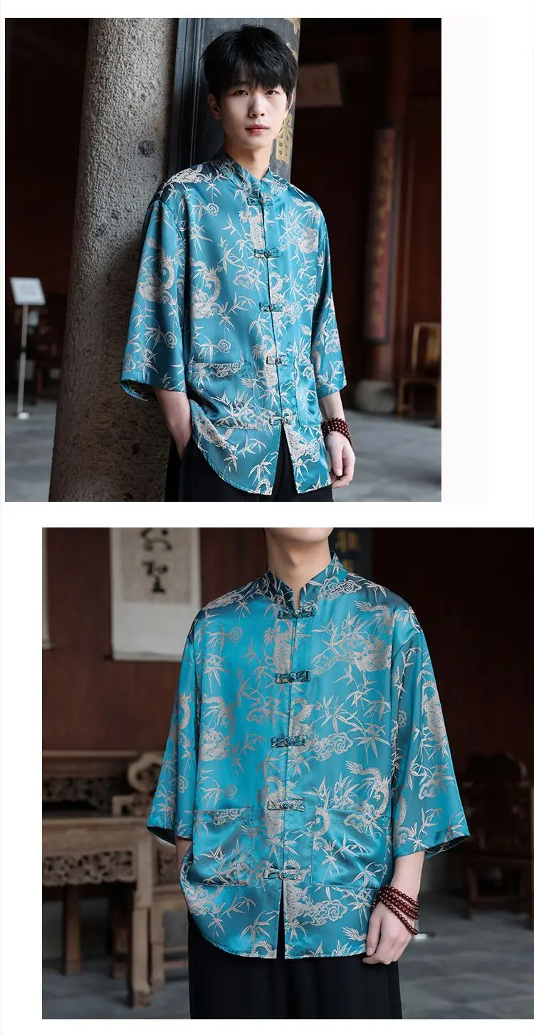 AIDASE - Chinese Style Thin Light Luxury Retro Men National Trend Large Size Loose Ice Silk Shirt Men's Jacquard Fashion Trend Tang Suit