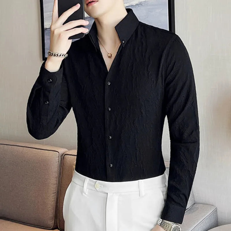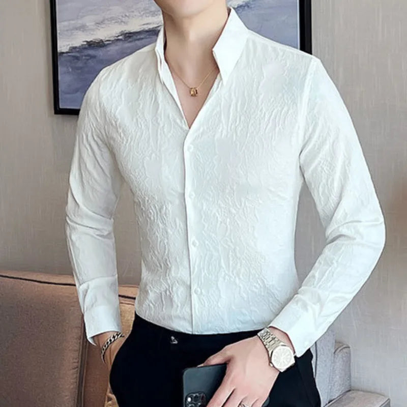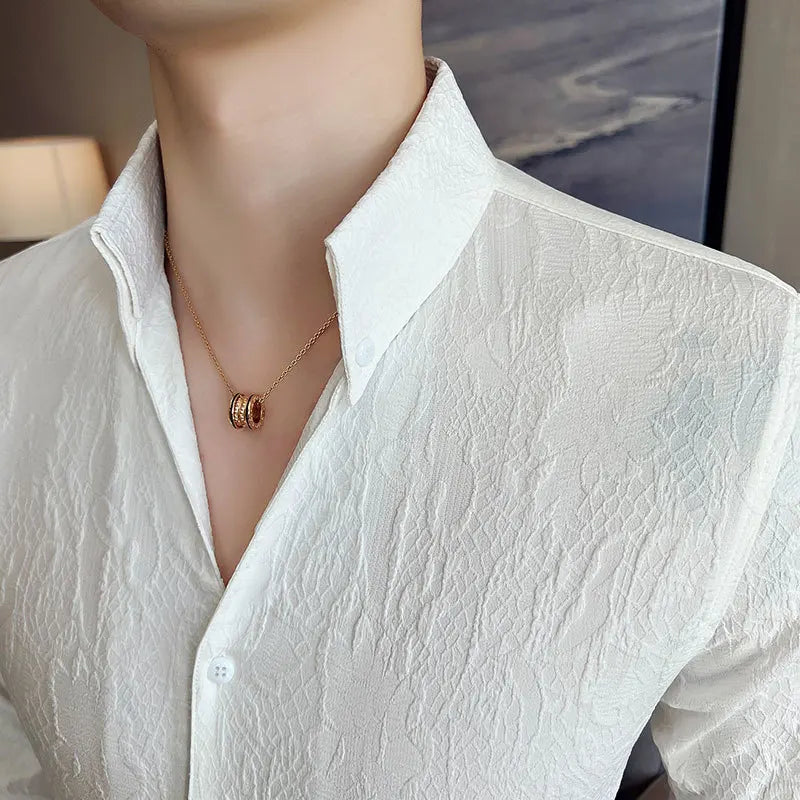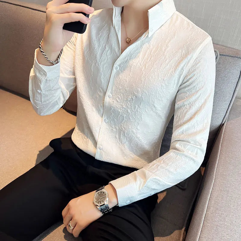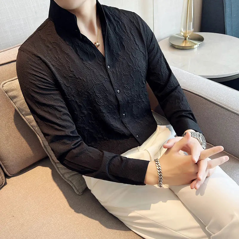 Fall Premium Jacquard Shirts Men Long Sleeve Casual Shirt Sexy Chemise Homme Social Party Tuxedo Nightclub Jacquard Shirt Men