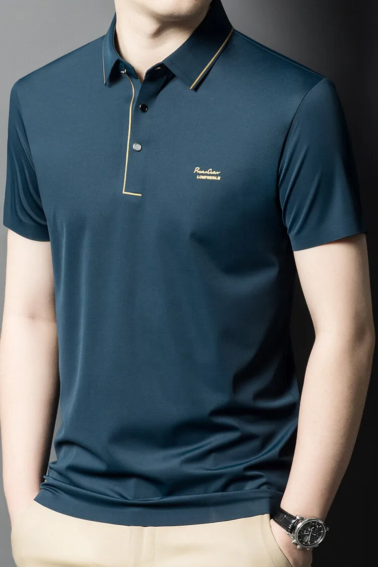 High-quality men's business casual polo shirt with contrasting collar design, breathable, slim-fit polo shirt, stretchable.