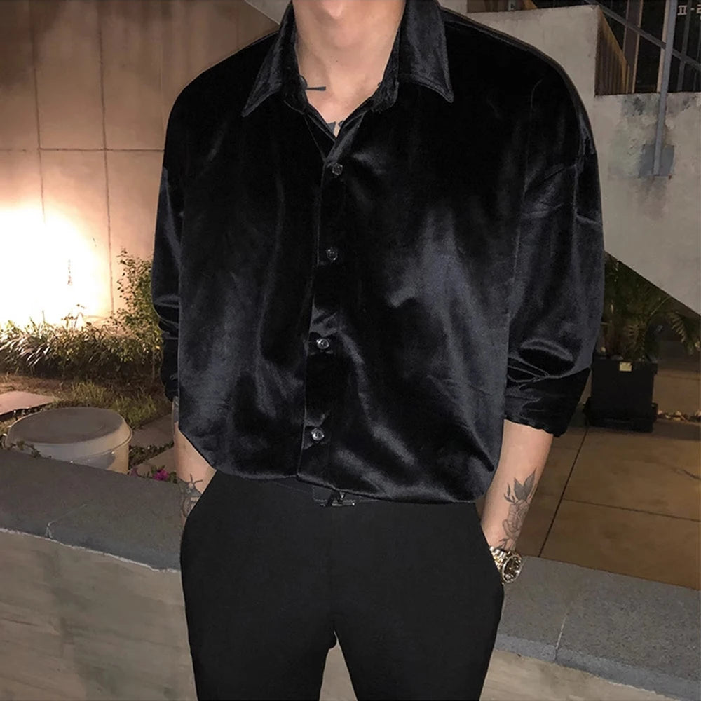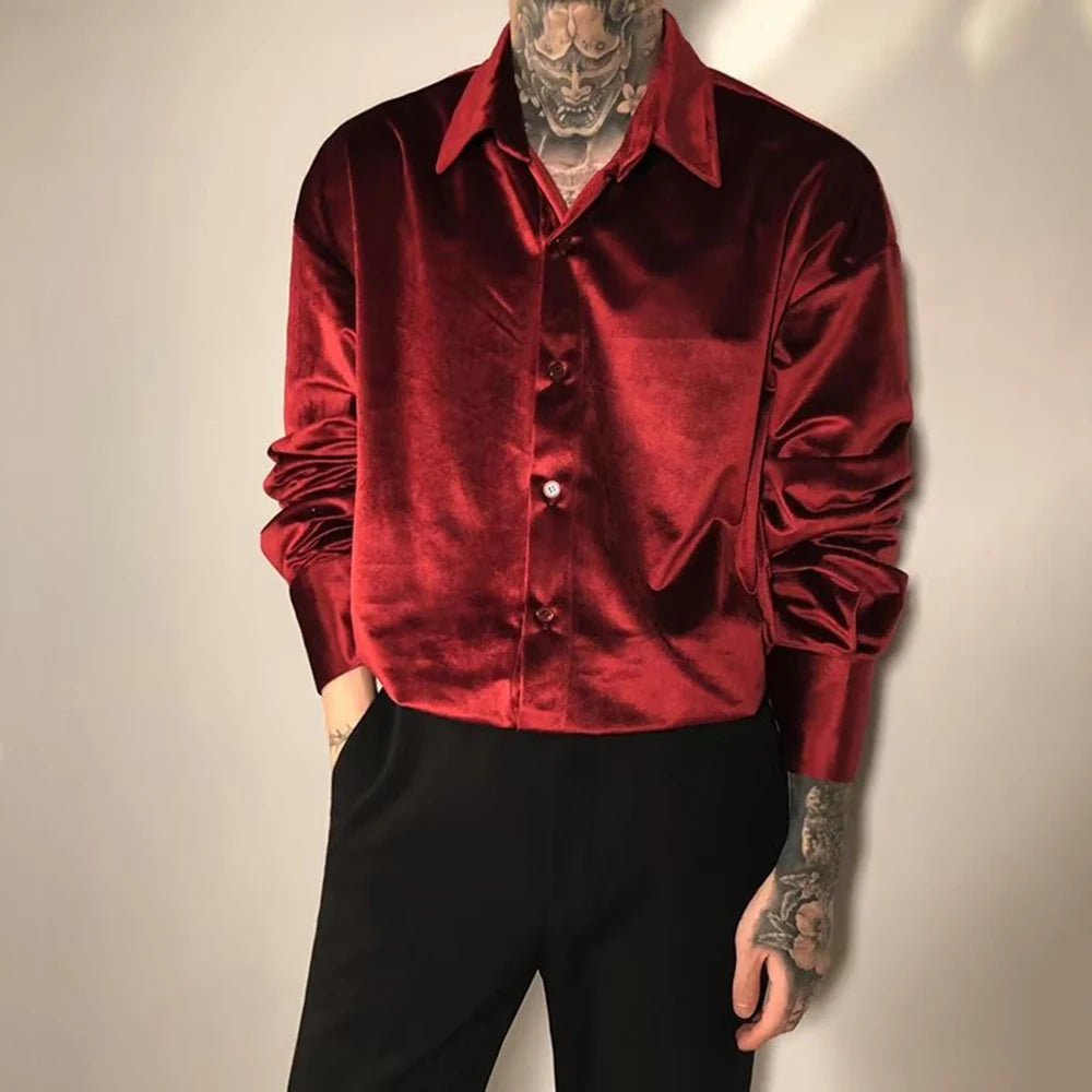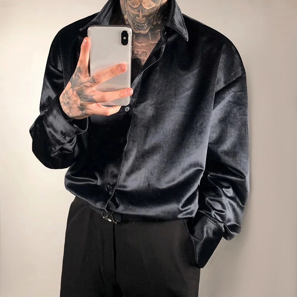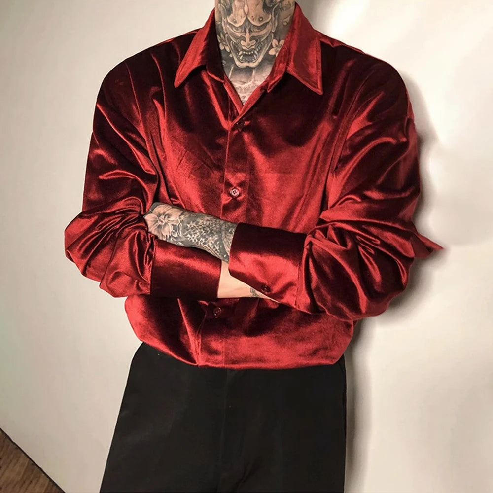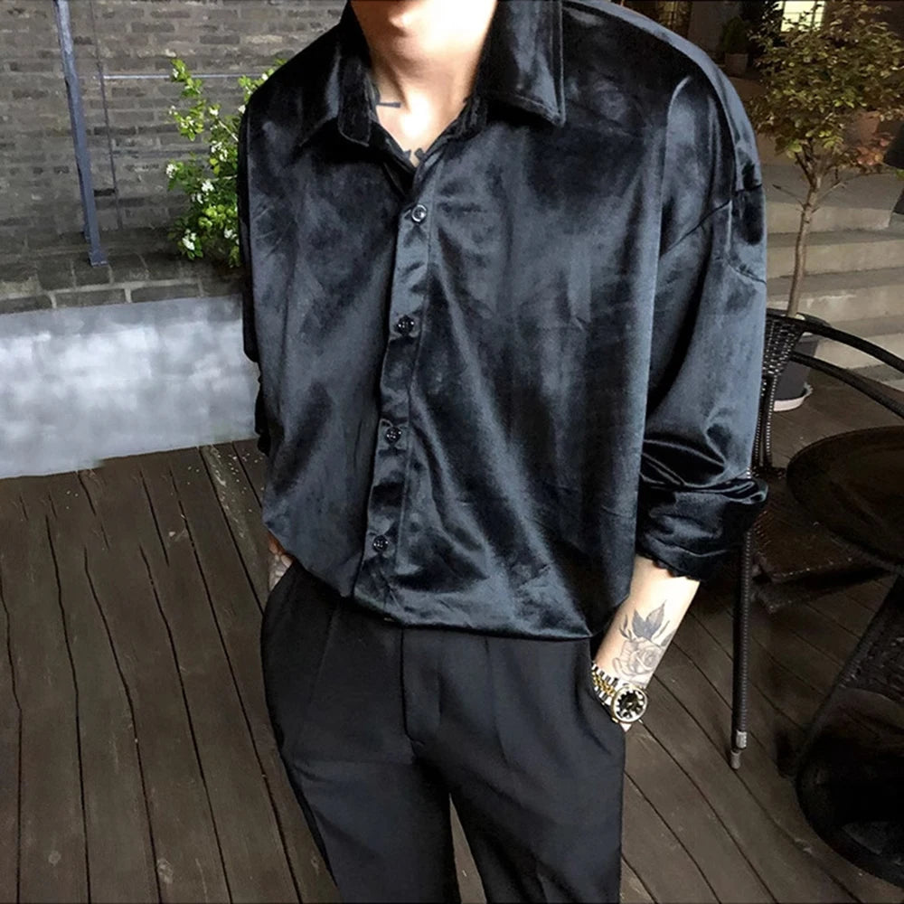 Hong Kong Style New Trendy Shiny Long-Sleeve Gold Velvet Shirts Unisex Fashion Temperament Casual Shirts Jackets For Couples
