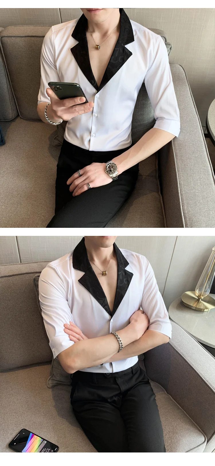 Jacquard Stitching Shirts For Men Half Sleeve Slim Casual Shirt Social Party Tuxedo Chemise Homme Streetwear Men Clothing