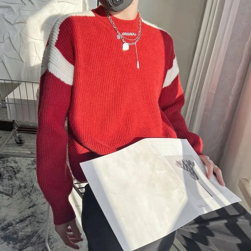 Aidase Knit Sweater Male Red Round Collar Graphic Pullovers Crewneck 2024 Men's Clothing Trend T Shirt Cigaret Aesthetic Meme Knitwears